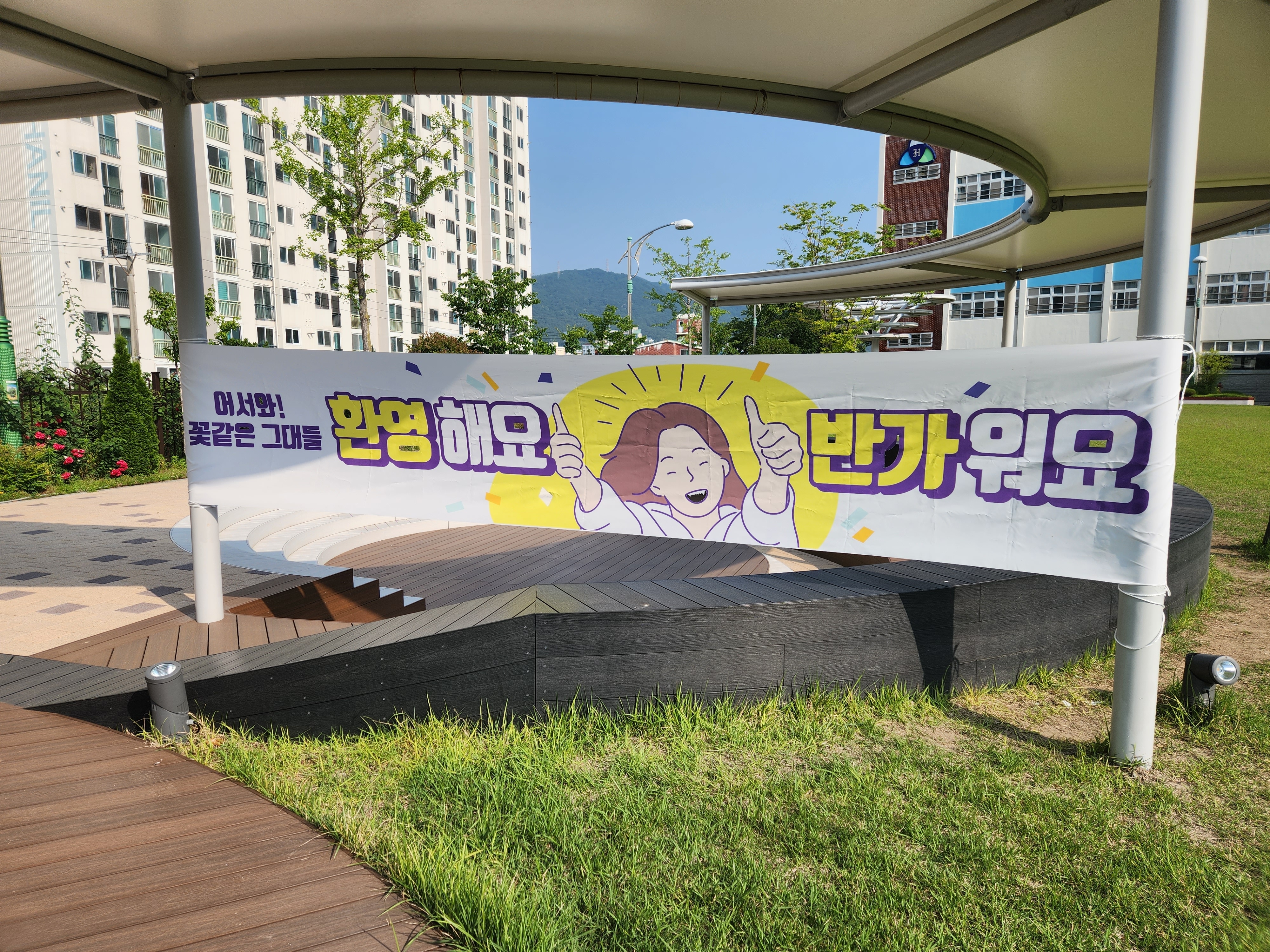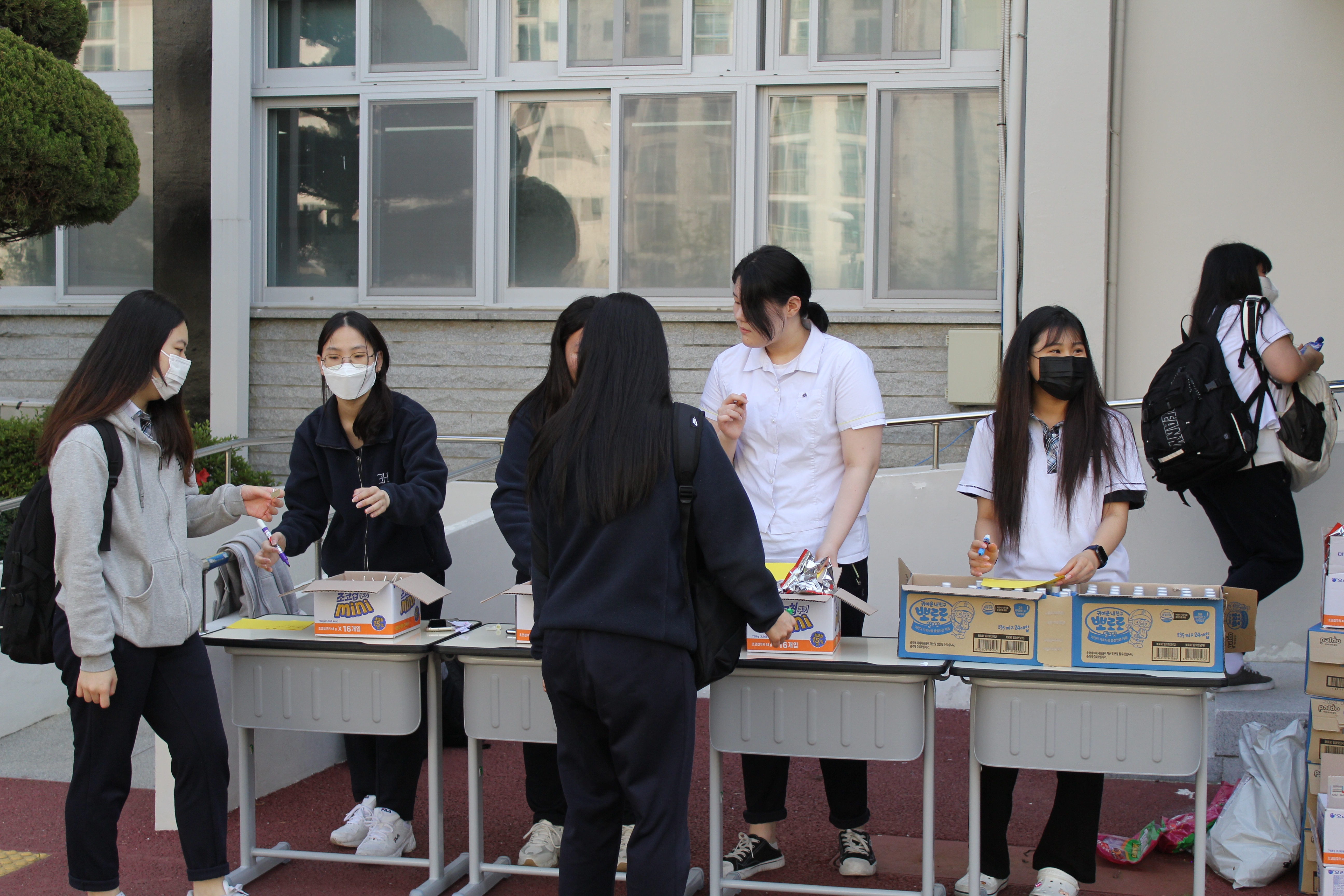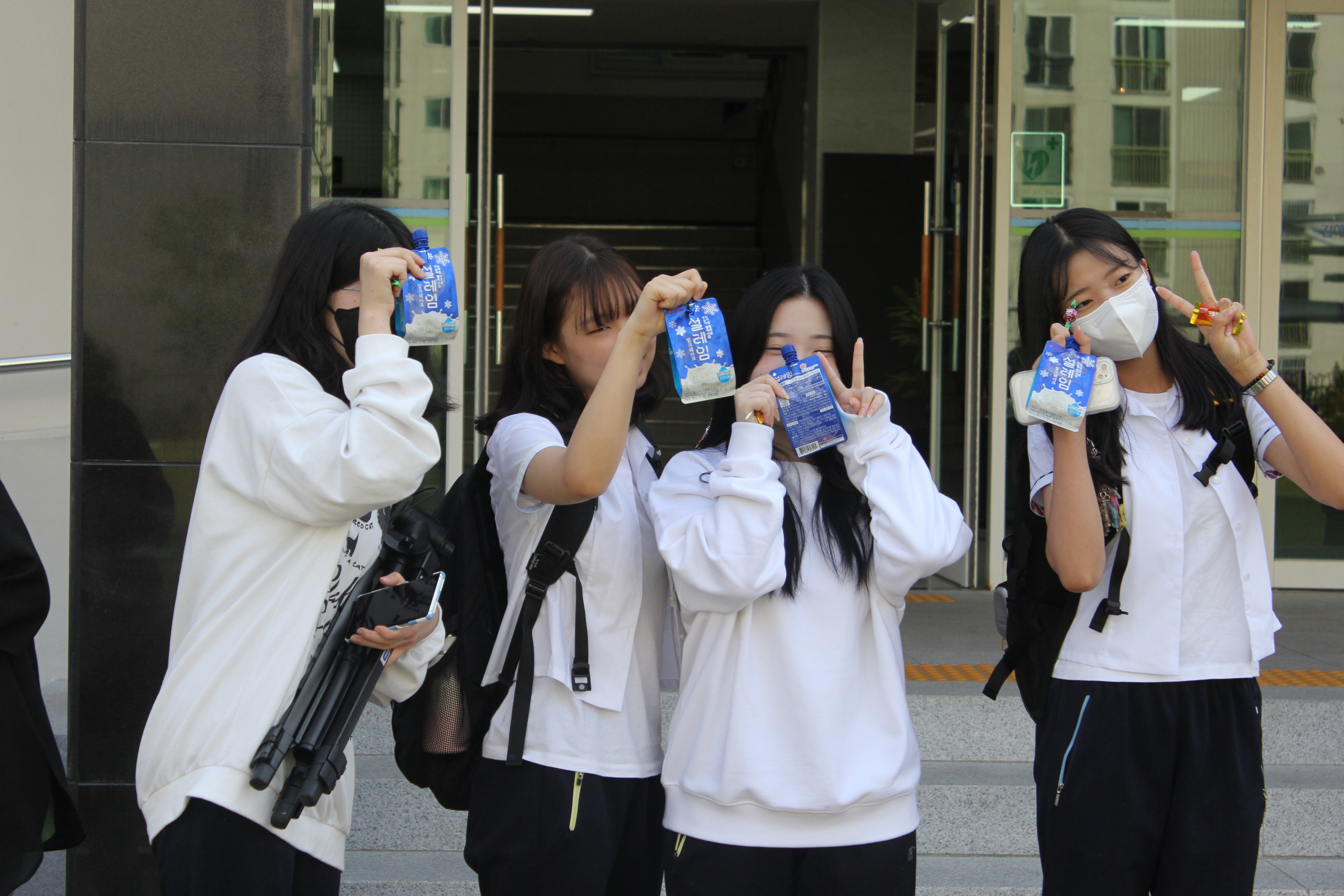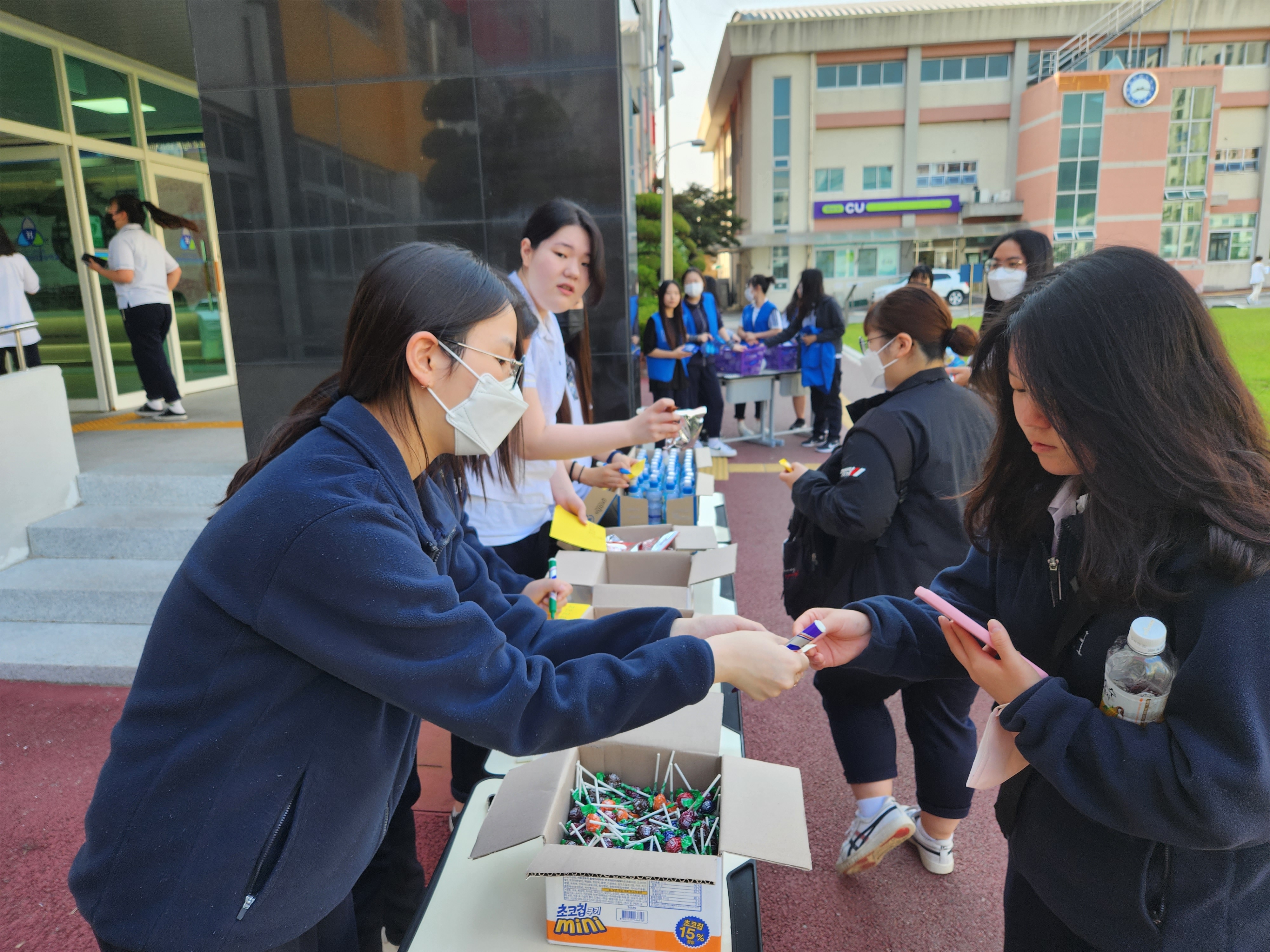 학생들이 즐겁게 등교할 수 있도록 다양한 이벤트와 간식거리가 마련되었습니다.