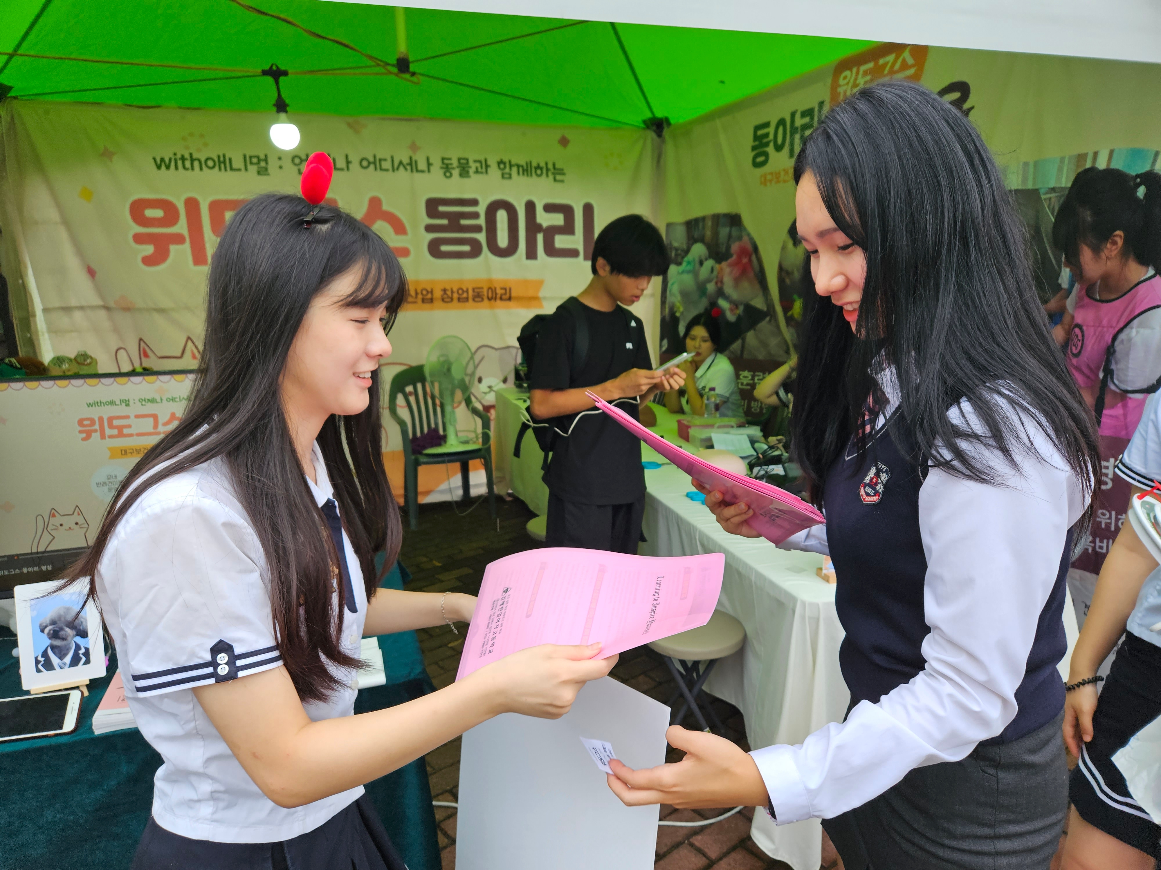 우리 학교를 알리기 위해 열심히 홍보부스도 꾸미고, 학생들과 학부모님들께 학교 홍보 기념품과 학교팜플렛을 나눠주면서 소통하고 왔습니다! 열심히 돌아다니며 학교팜플렛도 나눠주면서 우리 학교를 홍보 했어요!ㅎㅎ
