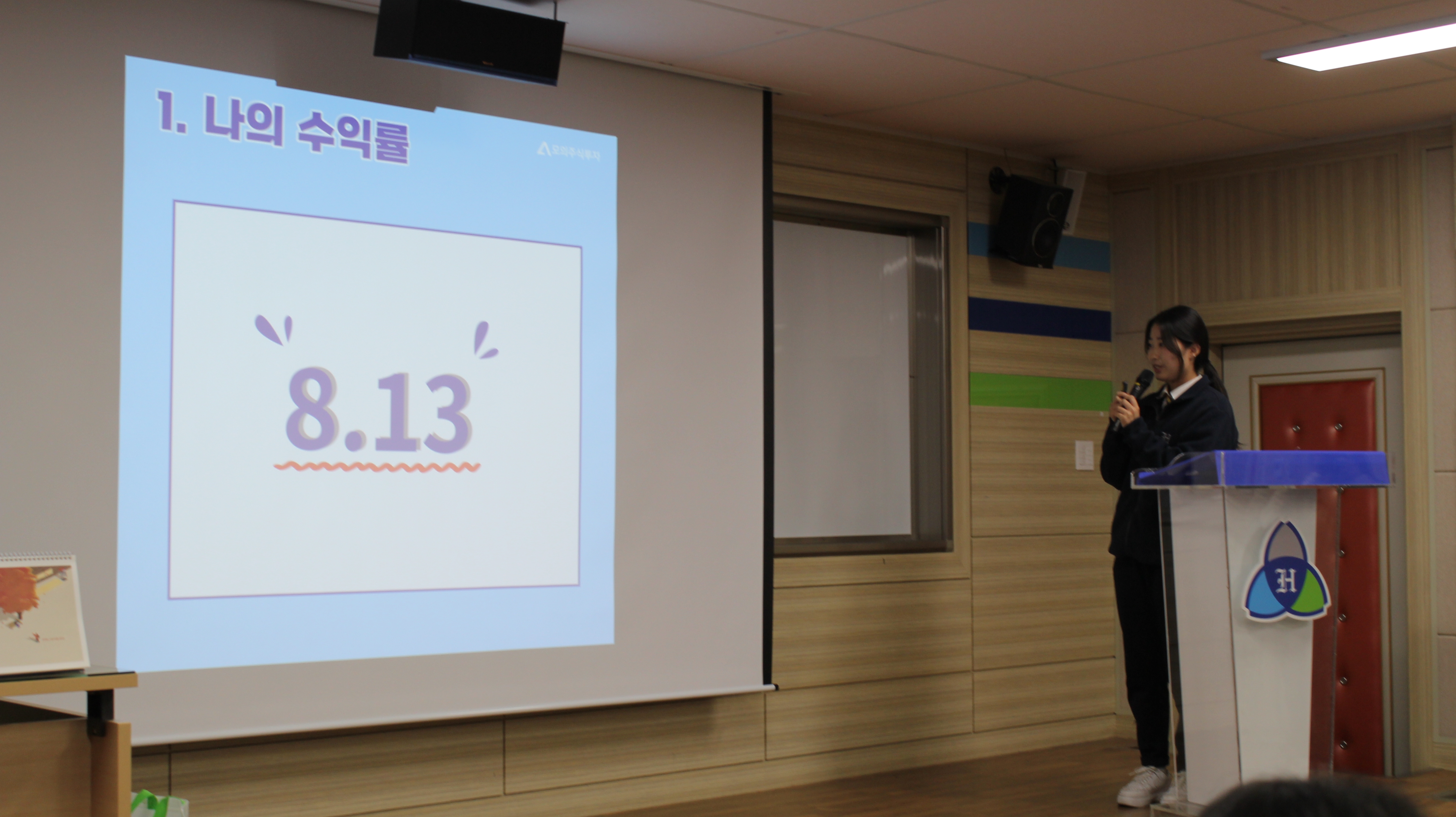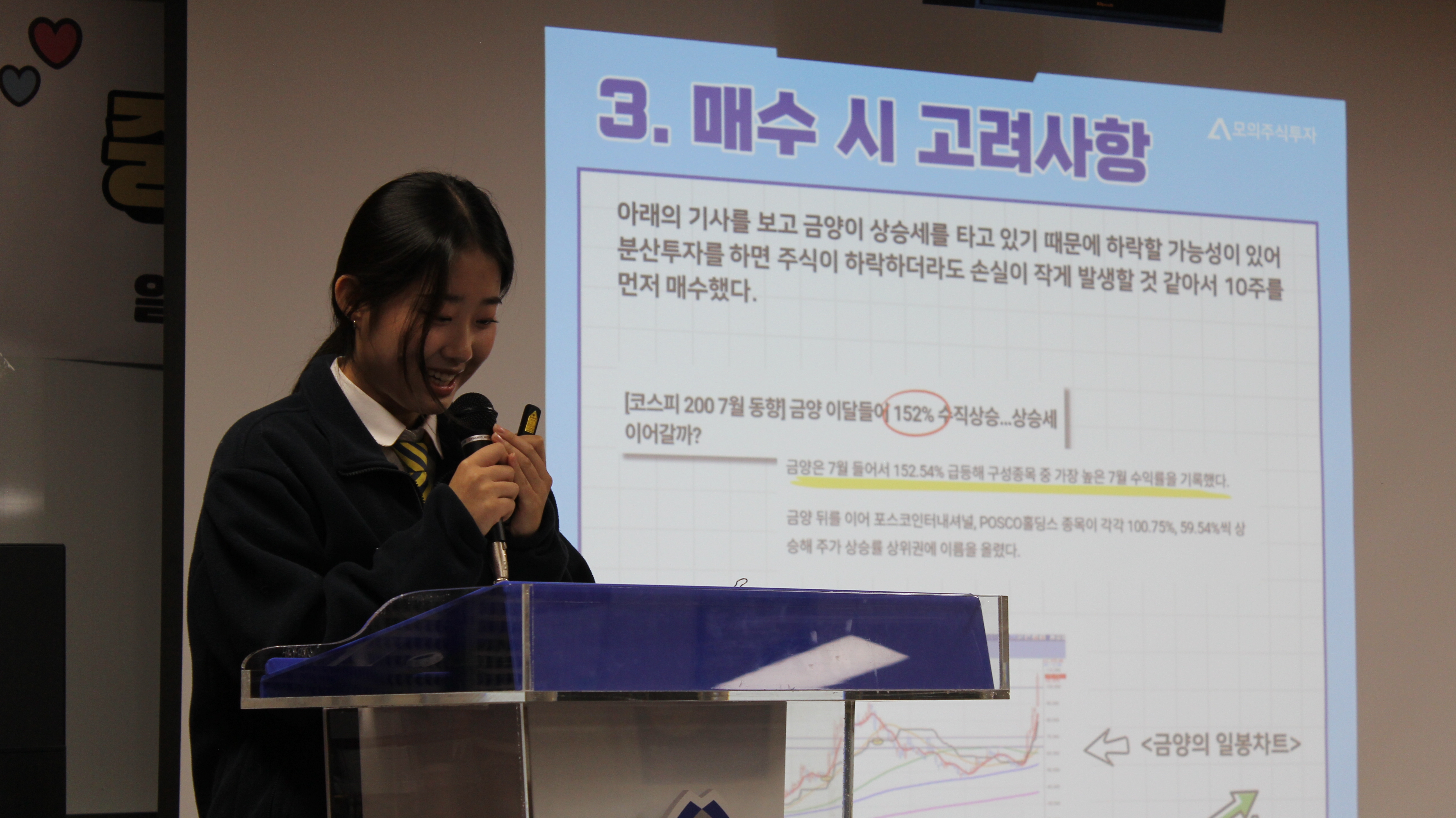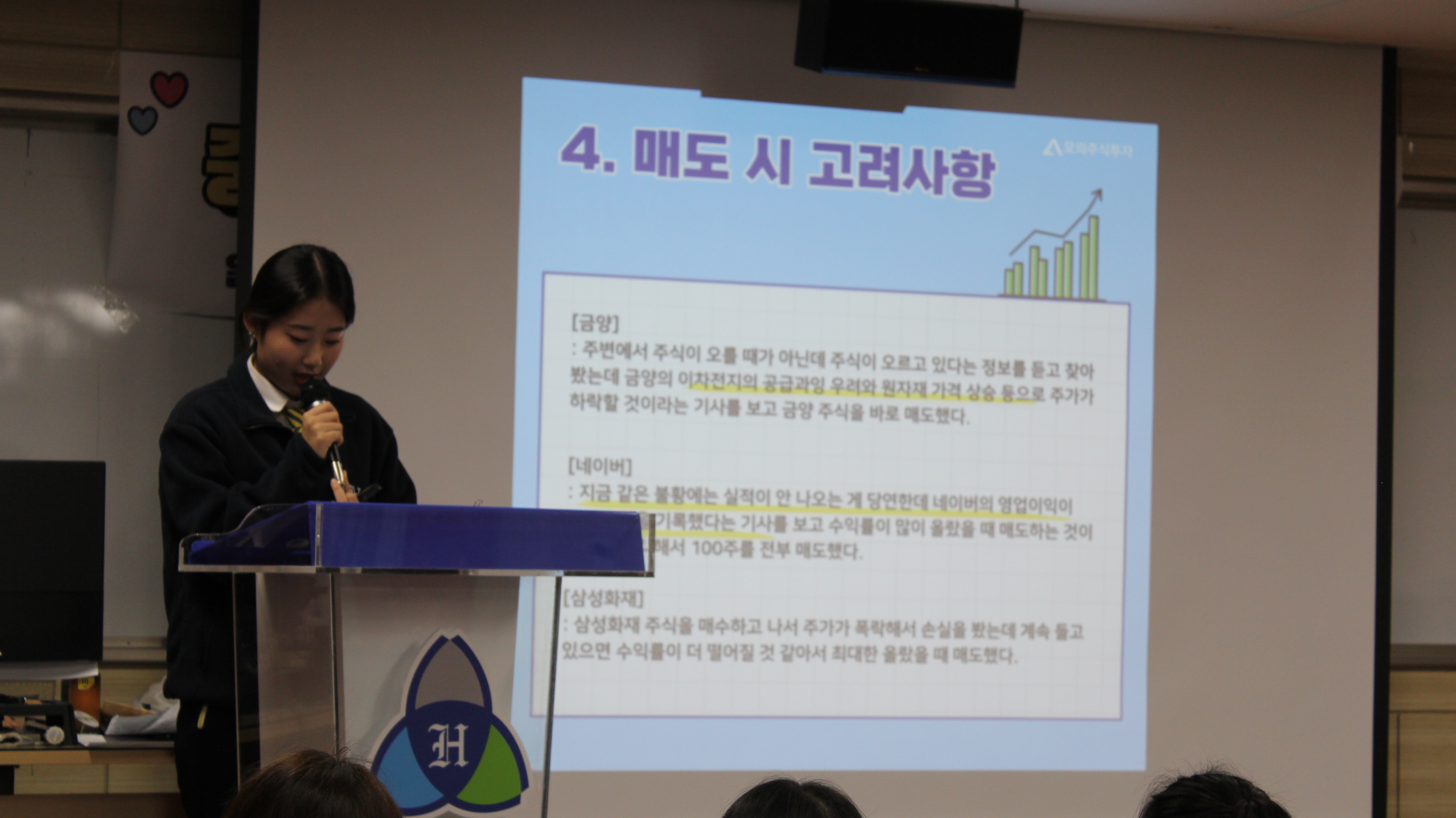 2학년 금융정보과, 세무회계과 학생들이 3개월간 모의주식투자를 실시한 후 보고서 발표회를 가졌습니다.