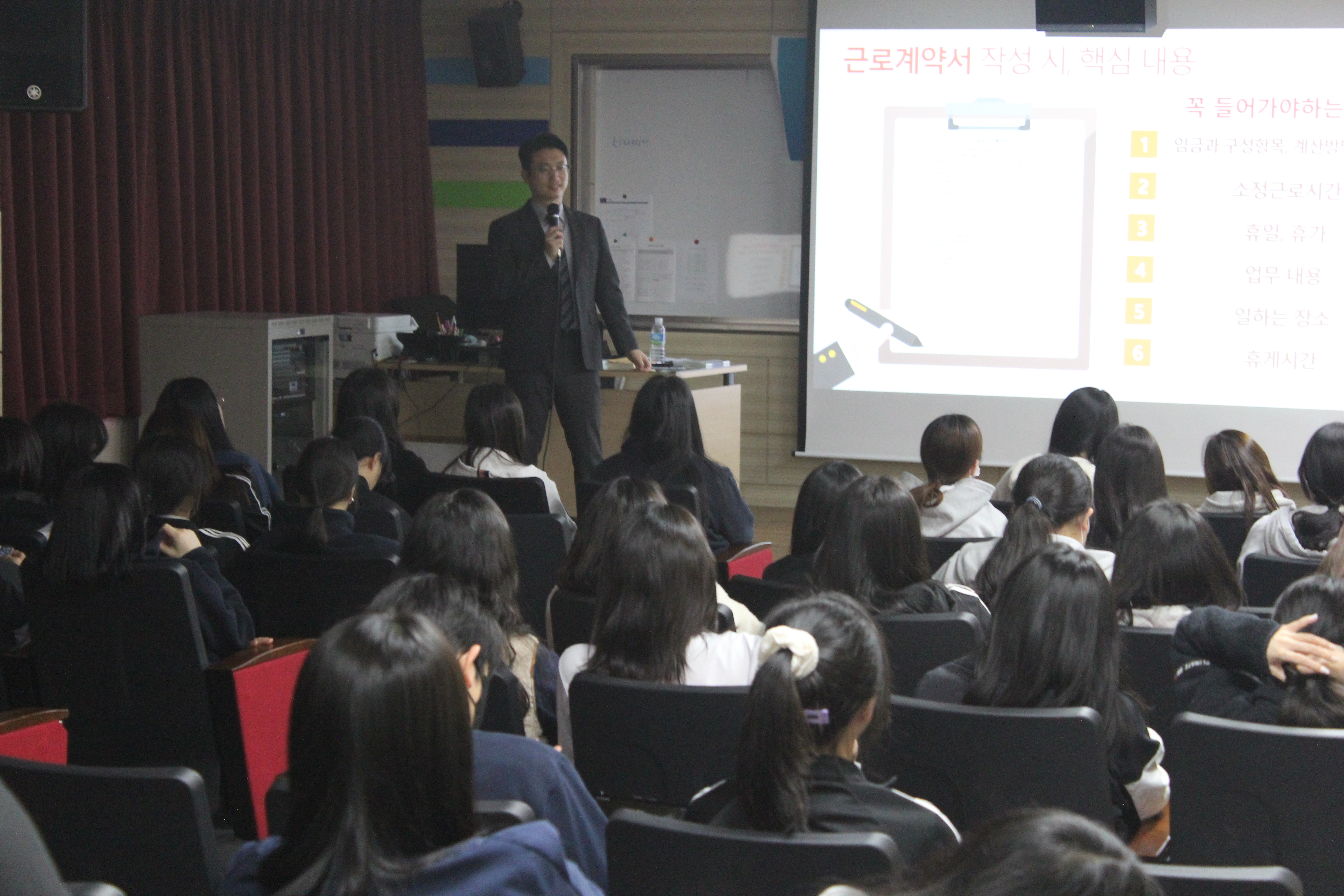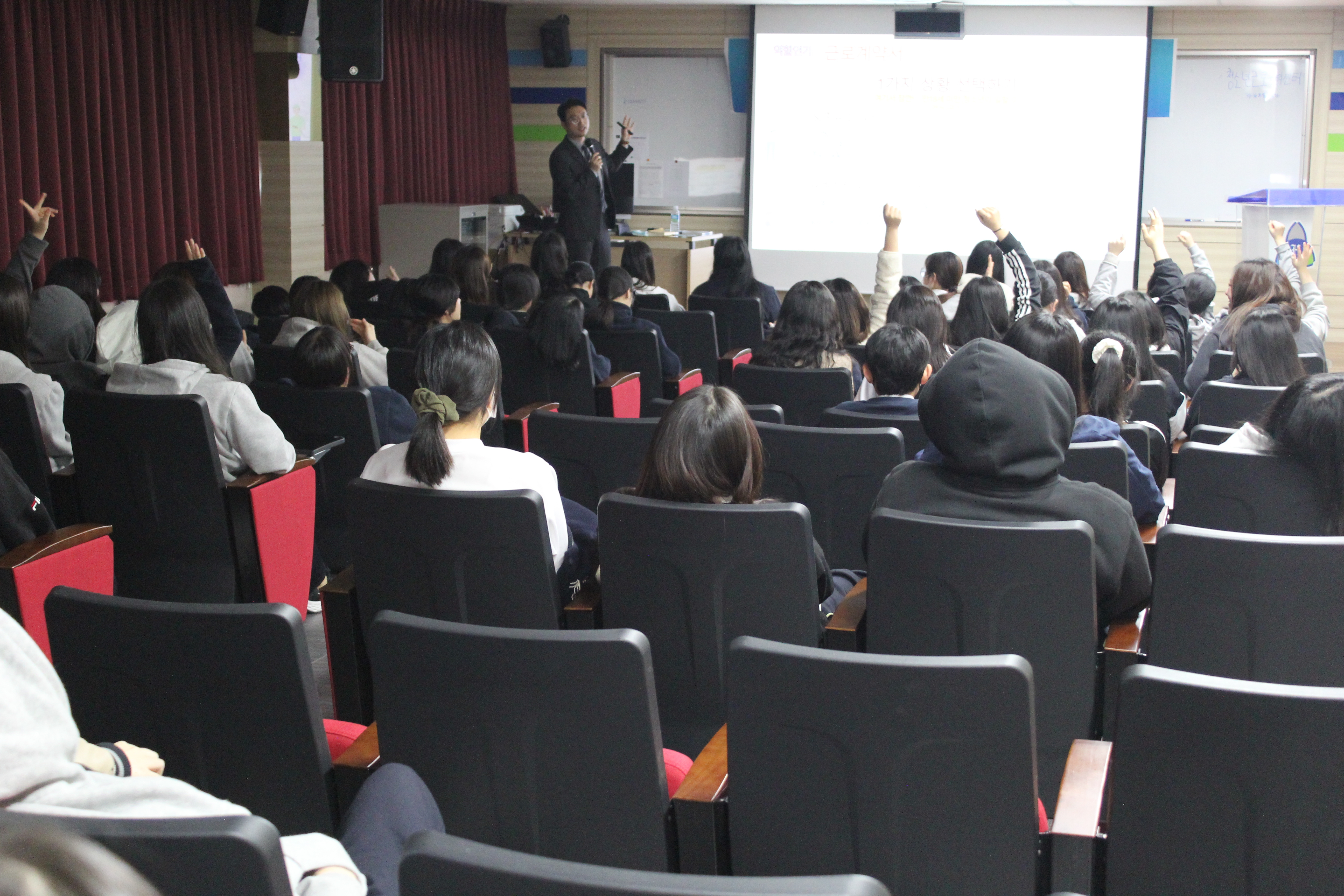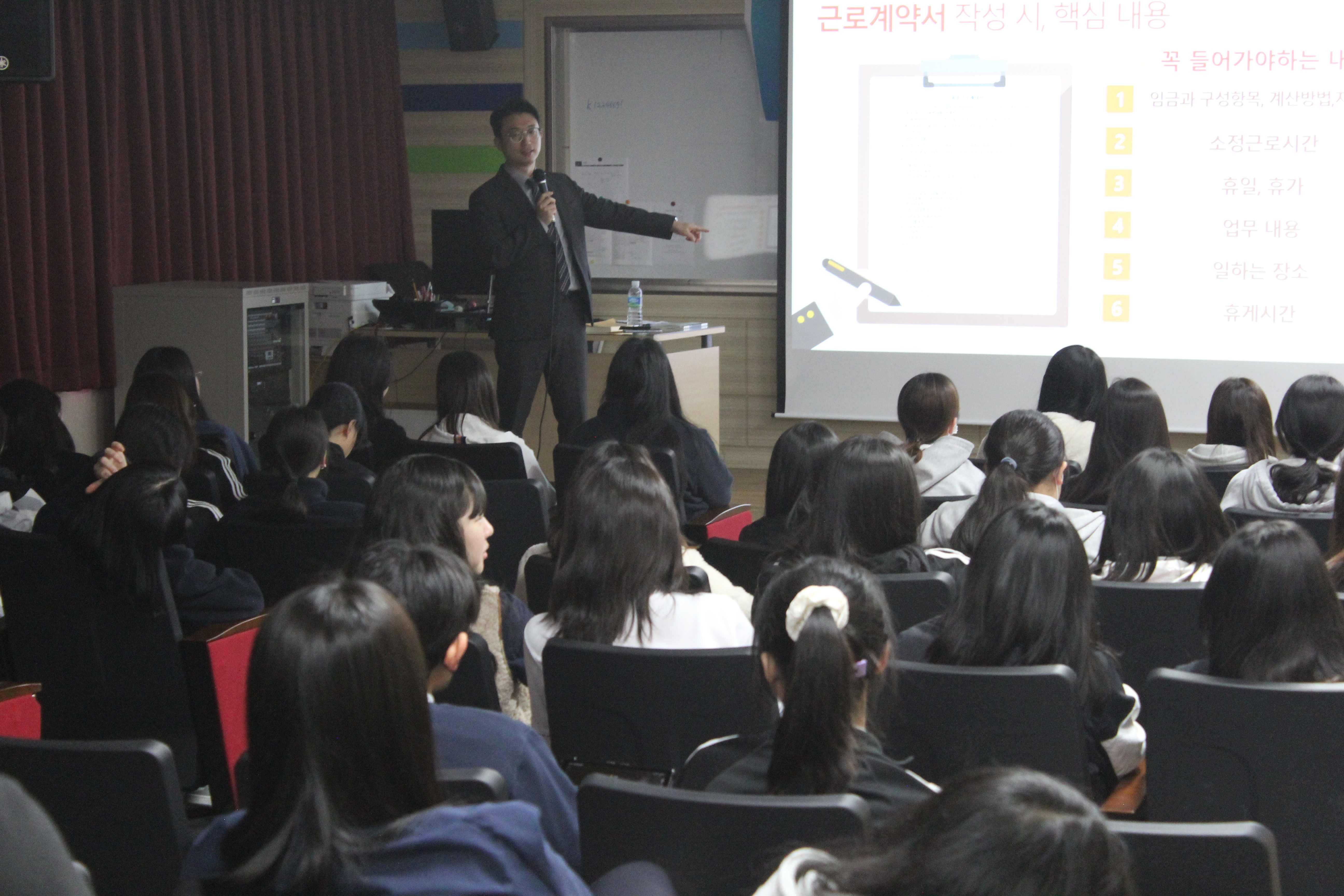 3학년을 대상으로 아르바이트 관련 청소년 노동교육을 실시하였습니다.