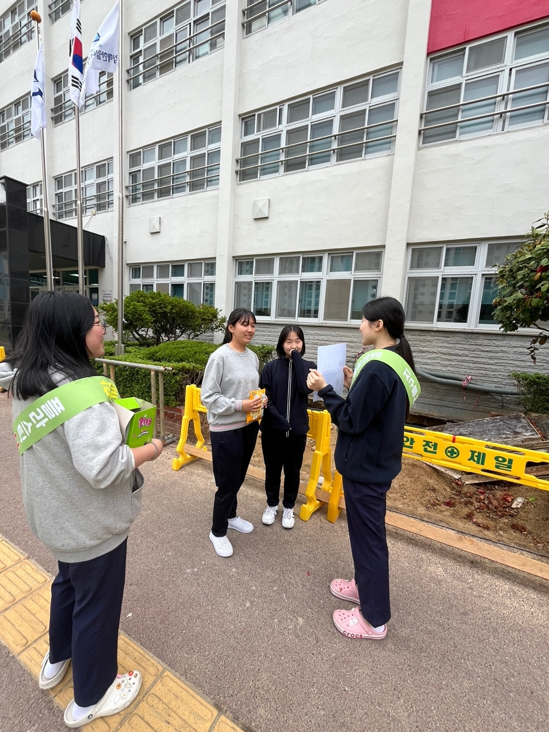 지구의 날을 맞이하여 보건동아리 골든타임 학생들이 환경캠페인 및 지구의 날 소등 행사를 주관하였습니다. 이번 행사를 통해 학생들과 교직원이 함께 모여 전등 및 전자기기의 불필요한 사용을 줄이는 실천을 함으로써 에너지 절약과 환경 보호의 중요성을 몸소 체험하게 되었으며, 행사 기간 동안, 참가자들은 다양한 환경 보호 관련 교육 프로그램과 워크숍에 참여하며 환경 보호 의식을 더욱 강화할 기회를 가졌습니다. 이 활동을 통해 학생들과 교직원은 지속 가능한 환경 보호의 중요성을 깨닫고, 실천적 경험을 쌓아가며 지역 사회와의 협력을 통해 보다 나은 환경을 조성하는 데 기여하게 되었습니다!