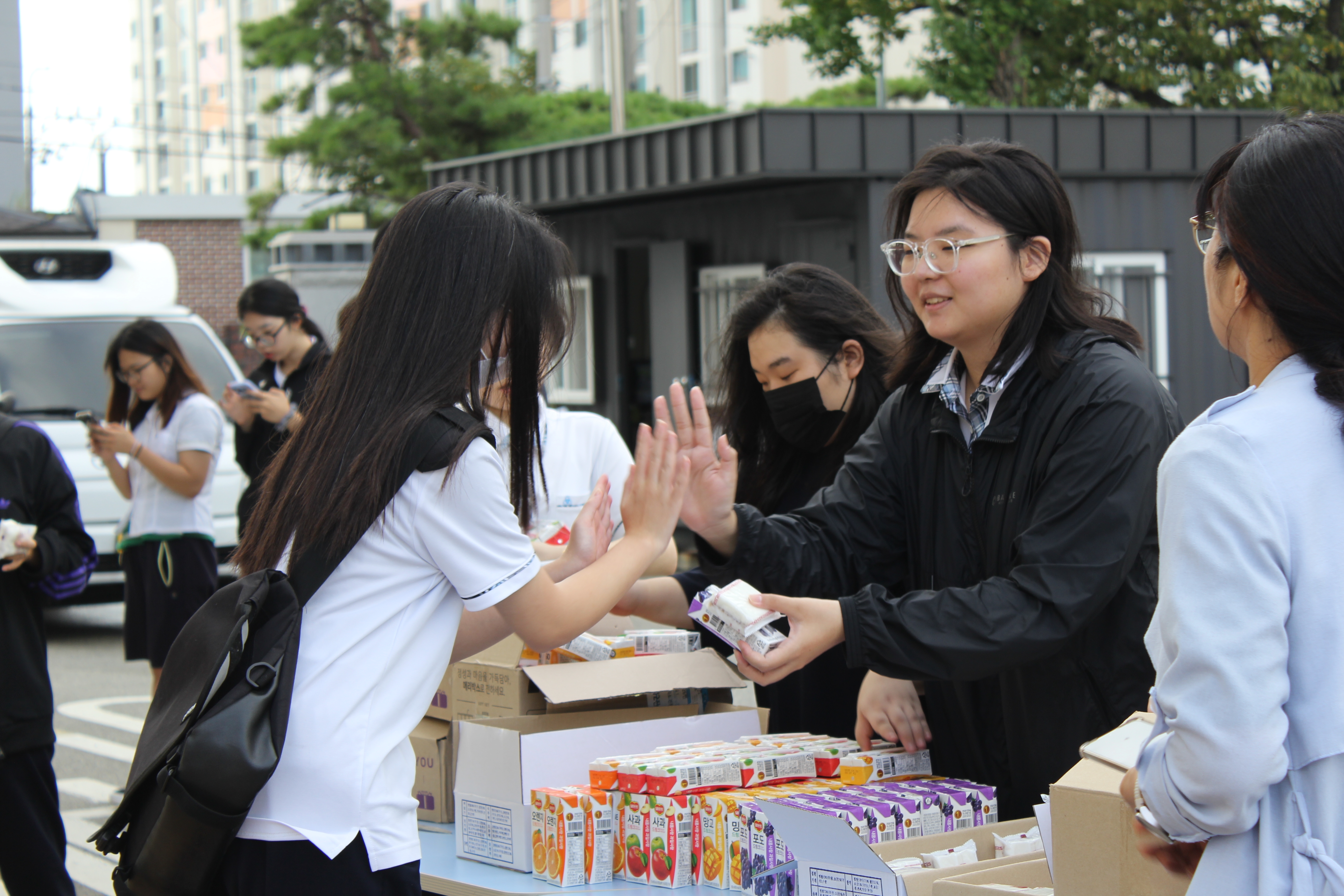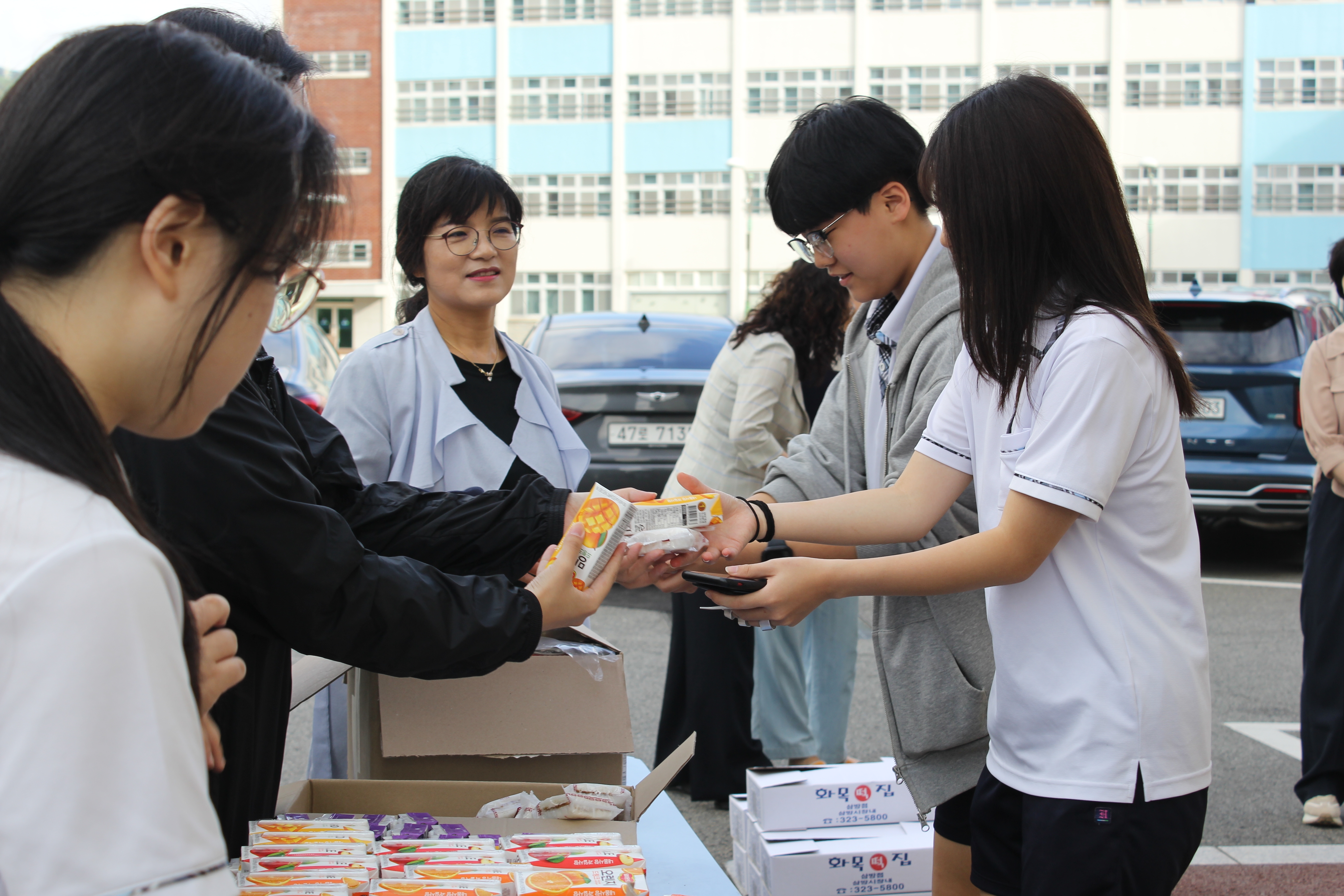 일 시: 2024. 9.3.(화) 7시50분장 소: 정문앞대 상: 학생. 모든 교직원간 식: 꿀설기와 음료수