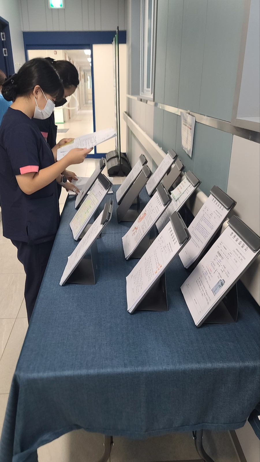 보건간호과 2학년 학생들이 하계방학 동안 병원 현장실습에서 쌓은 경험을 담아 제출한 우수 실습일지들이 전시되었습니다.