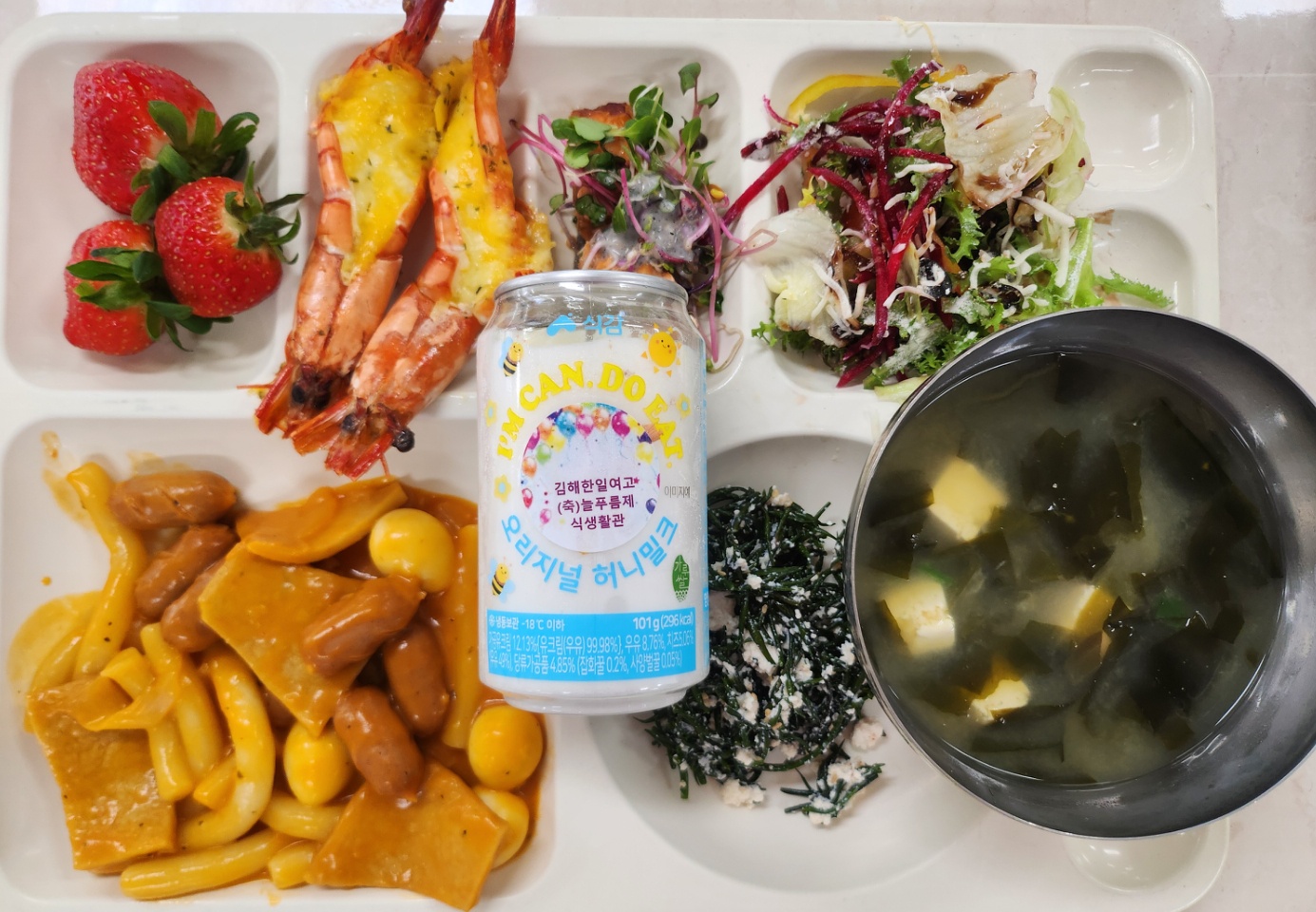 *자율밥 *자율)미소장국(5.6.8.9.18) *두부톳나물(자율)(5) 로메인샐러드(1.2.5.6.12) 투움바밀떡볶이(1.2.5.6.10.13.15.16)