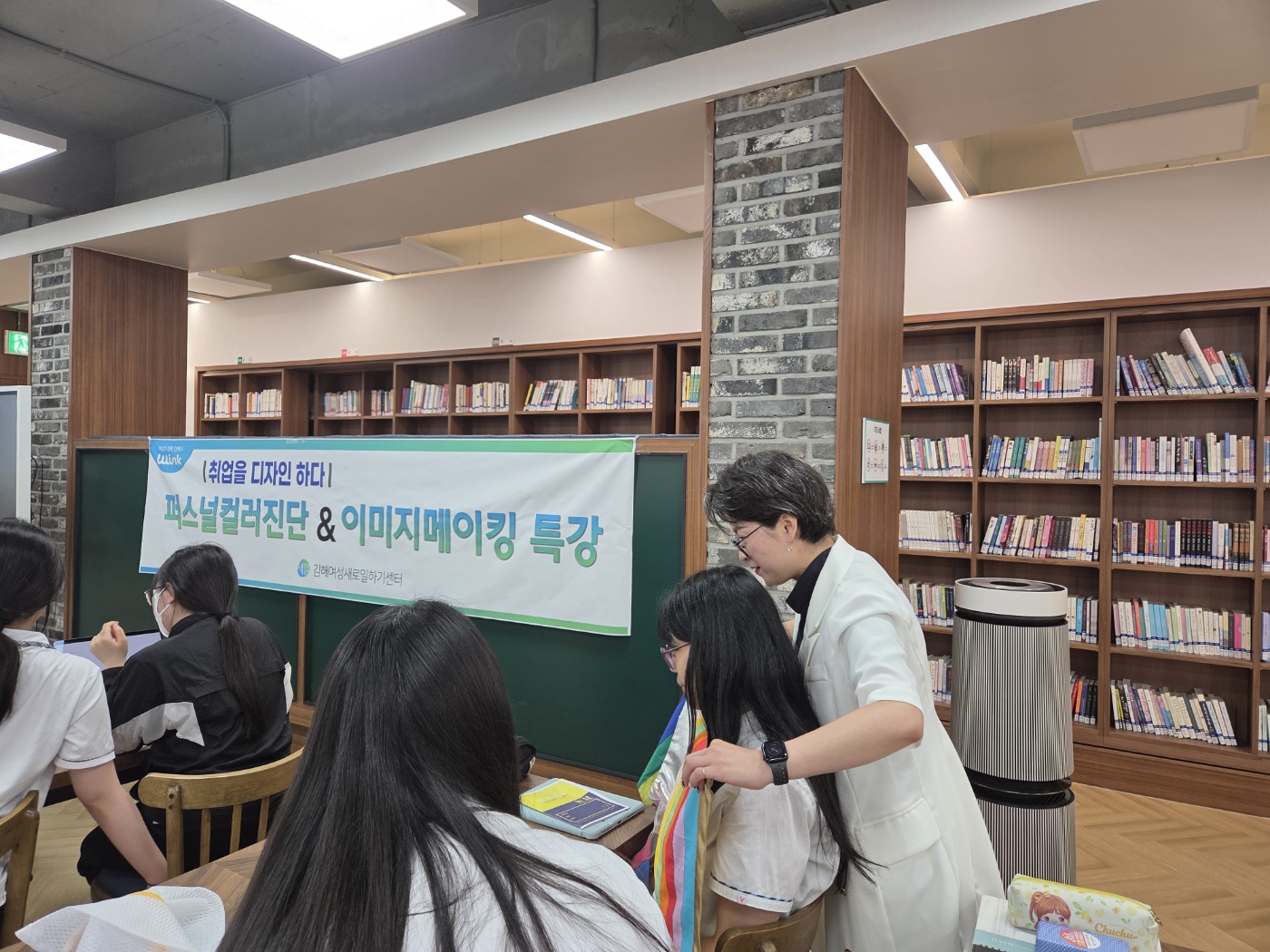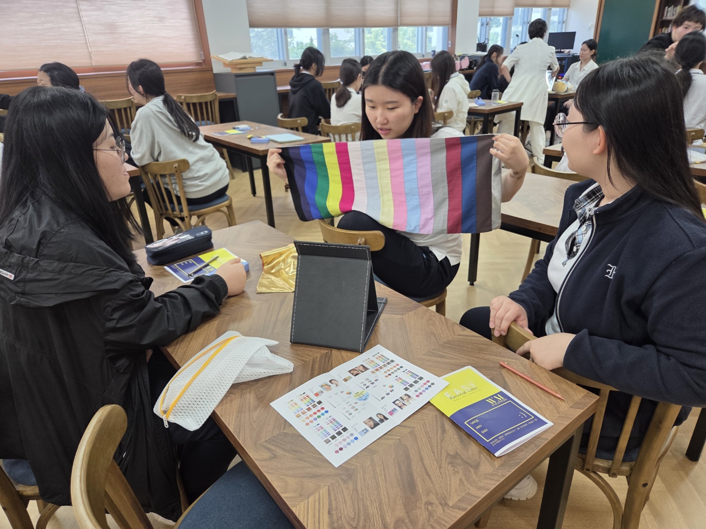 <"취업을 디자인하다-퍼스널컬러 특강 실시>1. 김해여성인력개발센터 주관 2. 내용 - 성공적인 면접을 위한 이미지메이킹 특강3. 일시 - 2025년 6월 9일 (월) 6~7교시4. 장소 - 도서관5. 대상 - 3학년 취업 희망자퍼스널컬러 진단과 이미지메이킹 특강을 통해 면접 경쟁력을 높이는 전략에 대해 배우는 귀한 시간이었습니다.