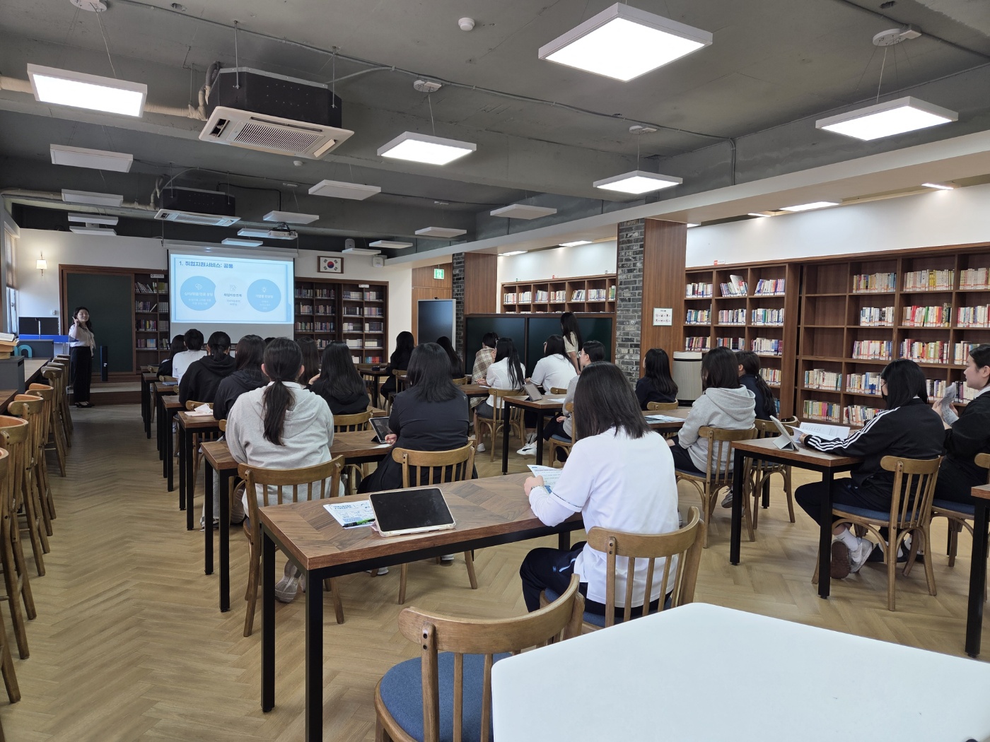 고등학교 3학년 취업 희망자 대상으로 고용노동부 민간 위탁기관에서 국민취업지원제도 설명회를 진행하였습니다.일시 : 2025년 6월 11일(수) 오후 2시 30분장소 : 도서관내용 : 1:1상담, 직업훈련, 일경험 등 다양한 취업지원 서비스 제공 등설명회를 통해 취업 준비 과정에서 도움 되는 정책 활용 전략을 배운 시간이었습니다.