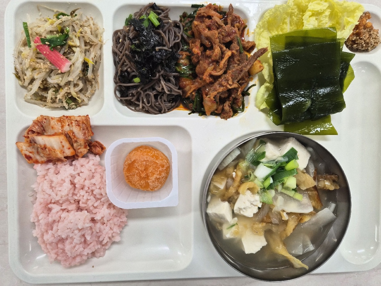 홍국쌀밥 북어채국1(5.6.8.9.18) 숙주맛살무침 황매실오리불고기(13)