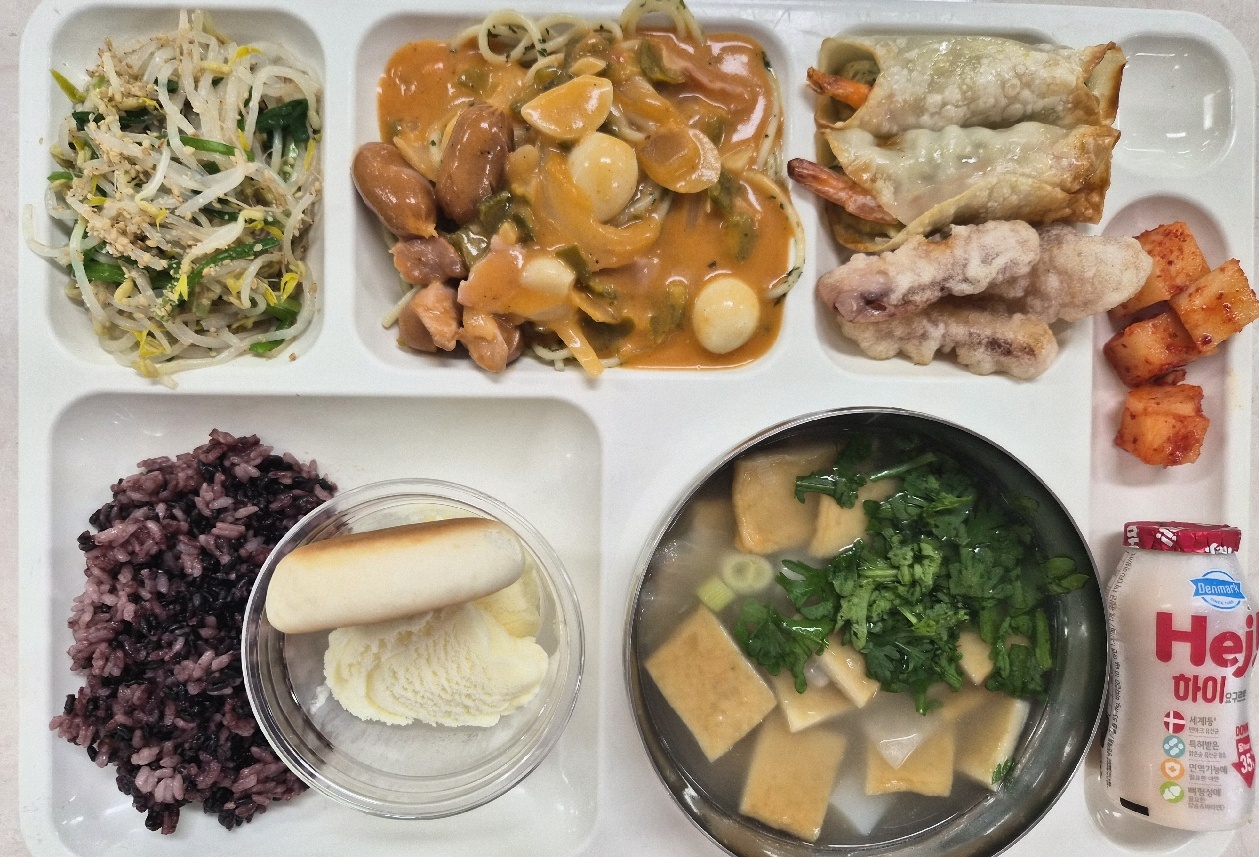 검정쌀밥 쑥갓어묵국21(1.5.6.8.9.13.18) 로제파스타(1.2.5.6.10.12.13.15.16) 숙주나물무침 꿀호떡&아이스크림(1.2.5.6.14) 통새우만두2P(1.5.6.9.10.15.16.17.18) 깍두기(9)