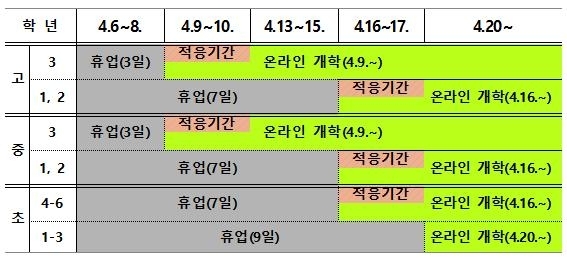 -중3,고 3학년: 4.9.(목) 온라인개학