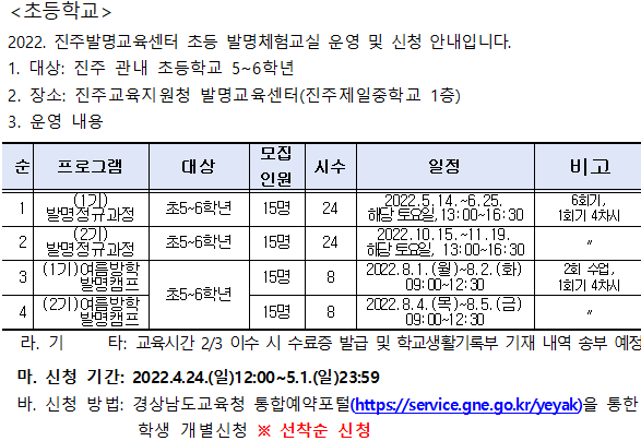2022. 진주발명교육센터 초등 발명체험교실 운영 계획 및 신청 안내