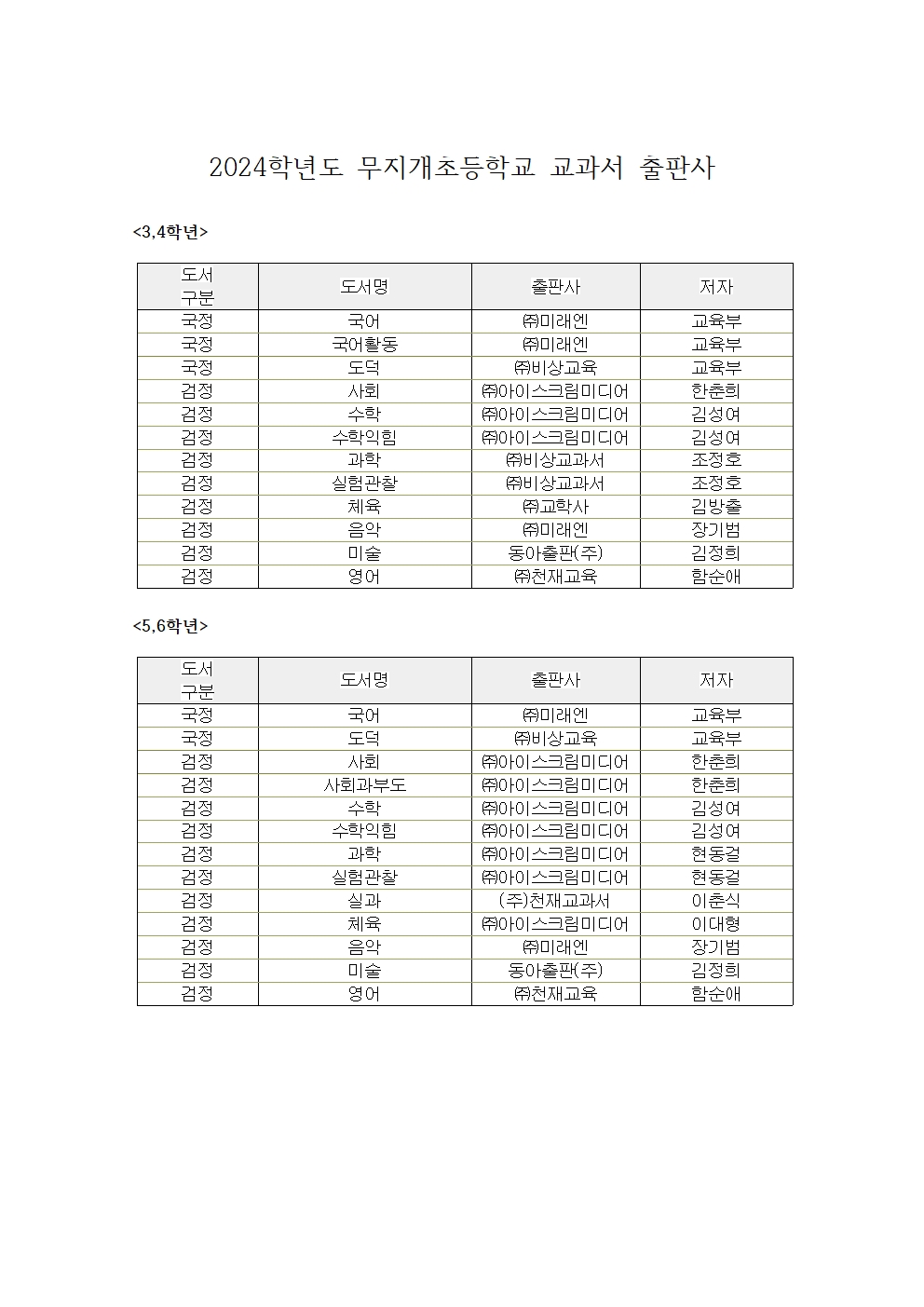 2024학년도 무지개 초등학교 교과서 출판사(3~6학년).jpg