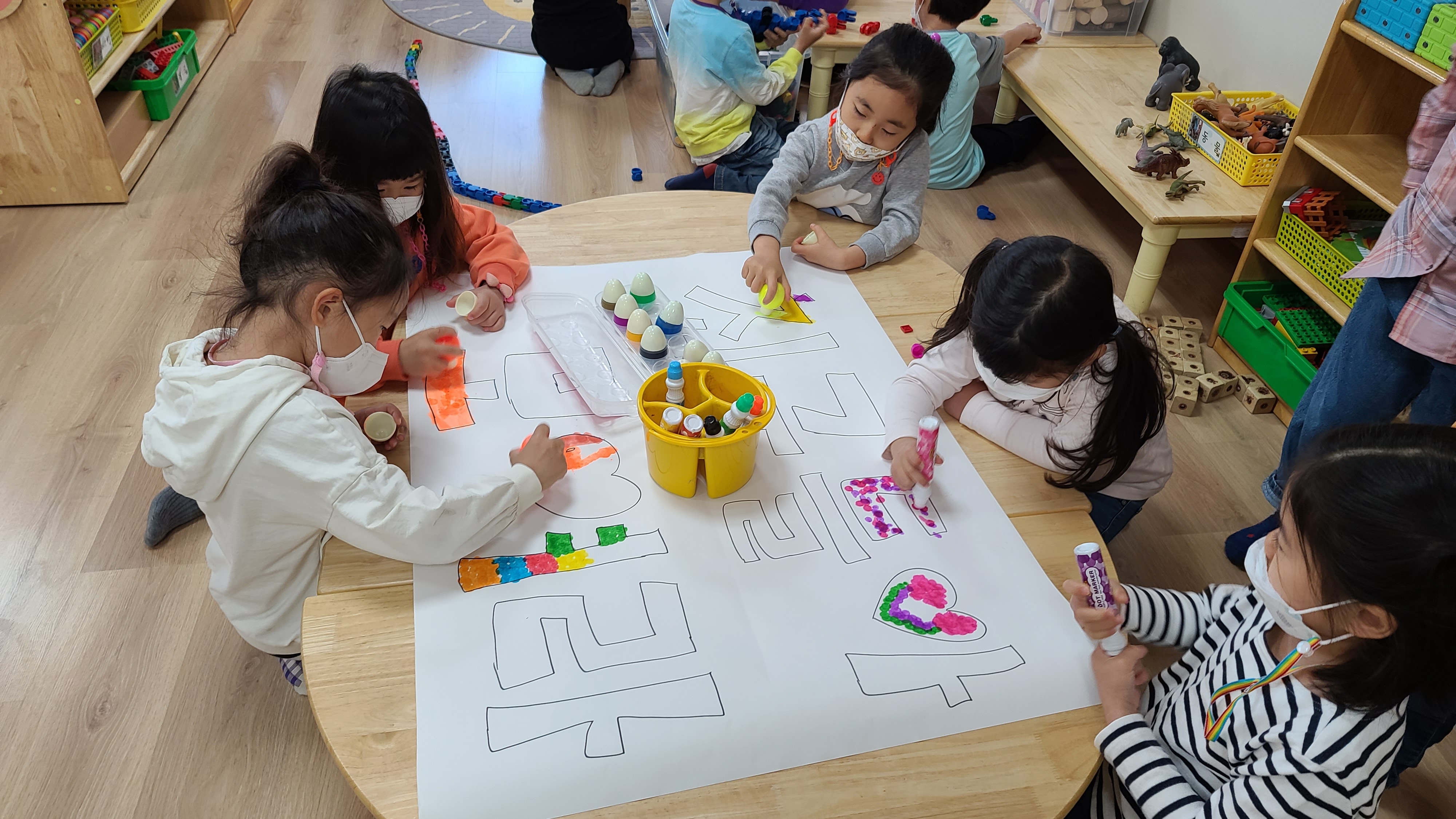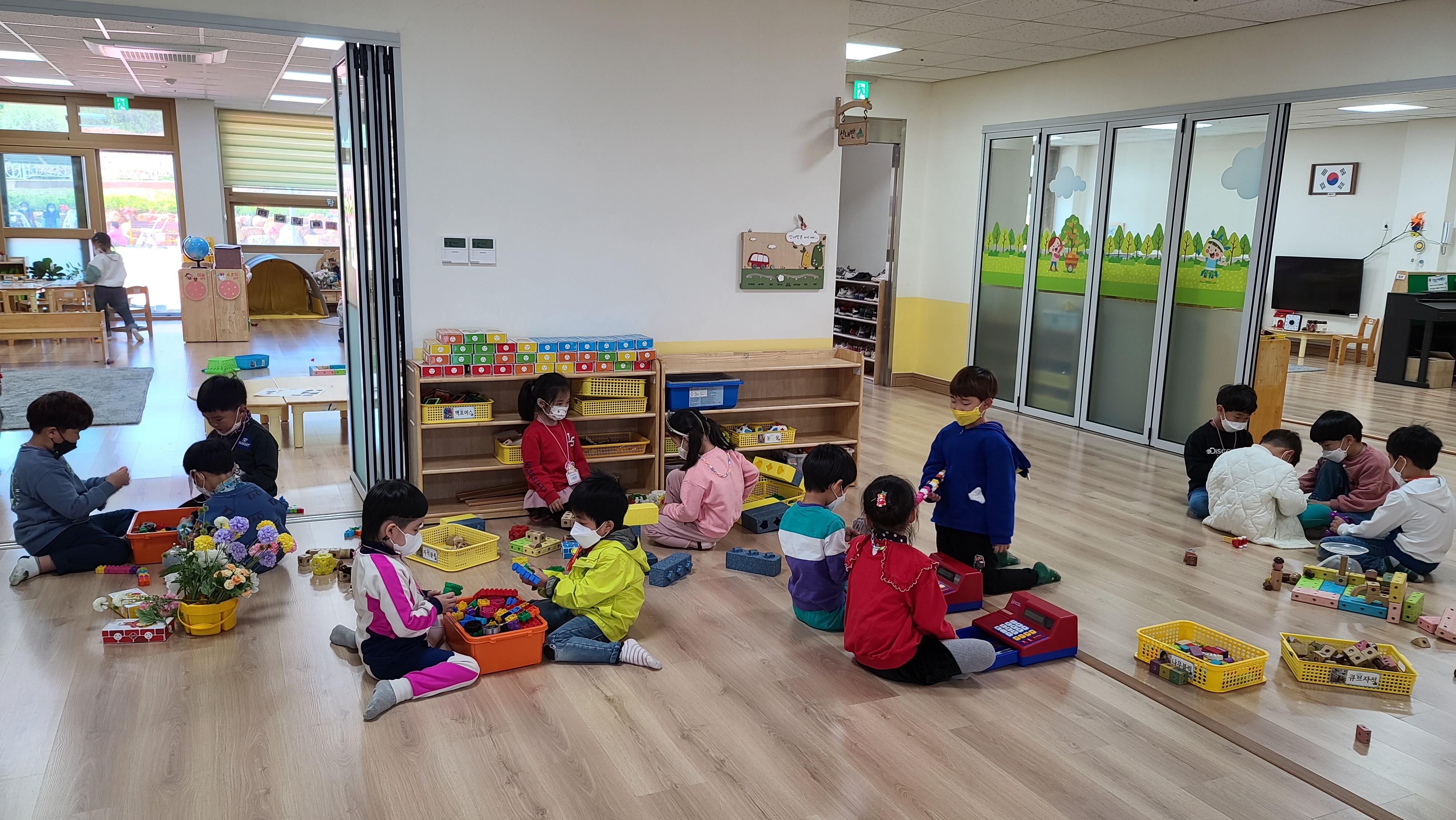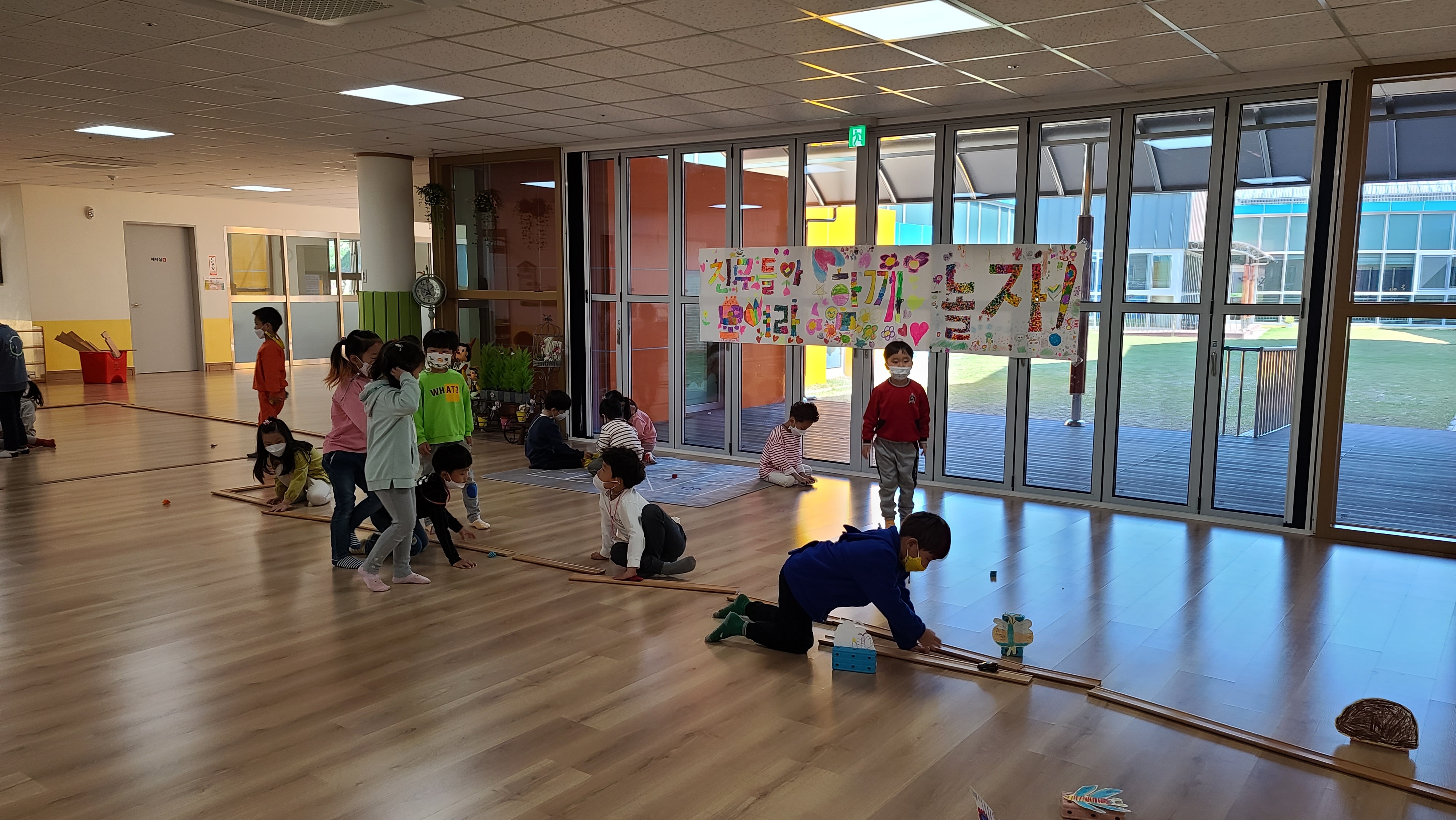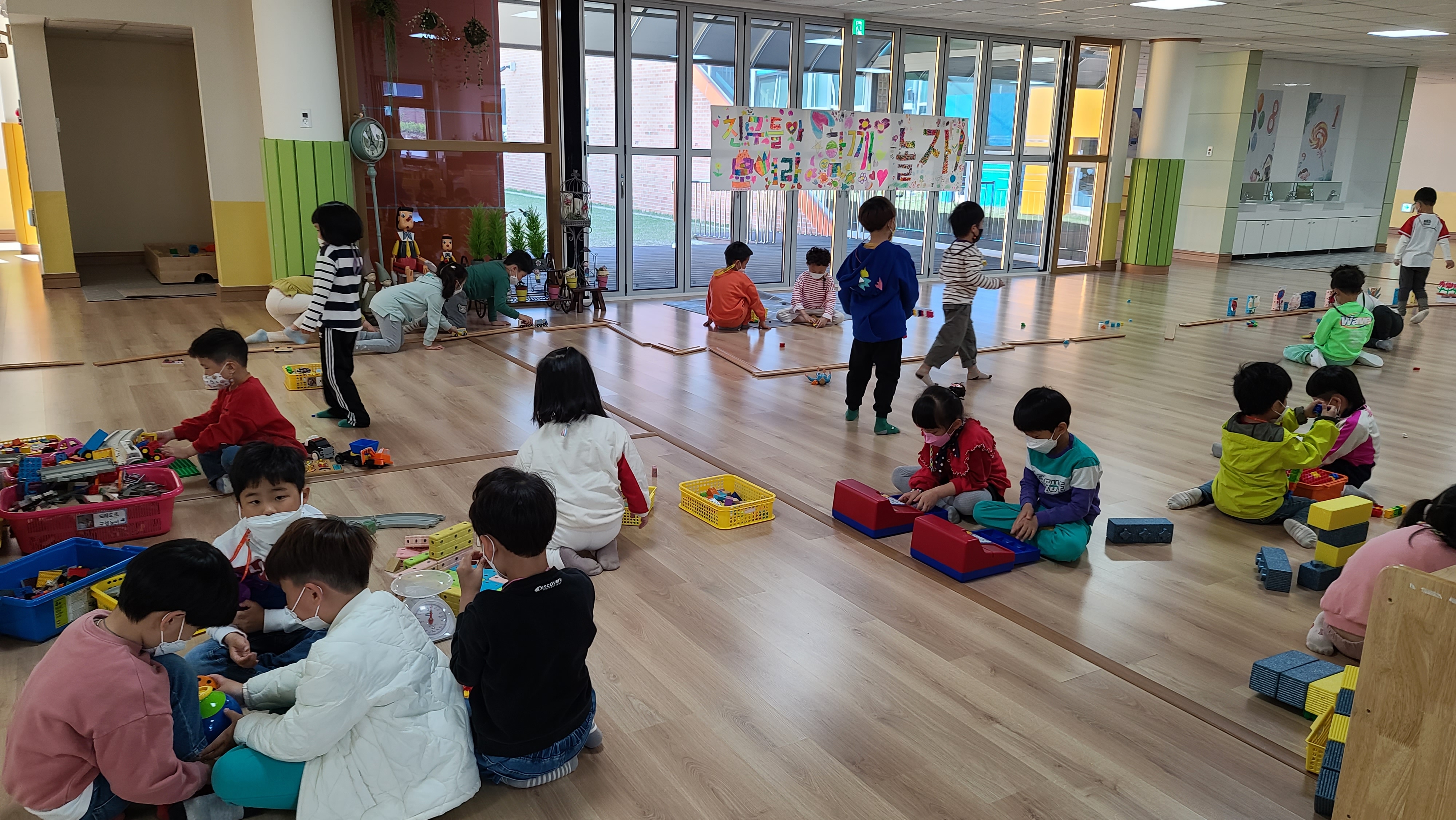 교실, 복도에서 만5세 유아들이 함께 놀이하는 시간을 가졌습니다.