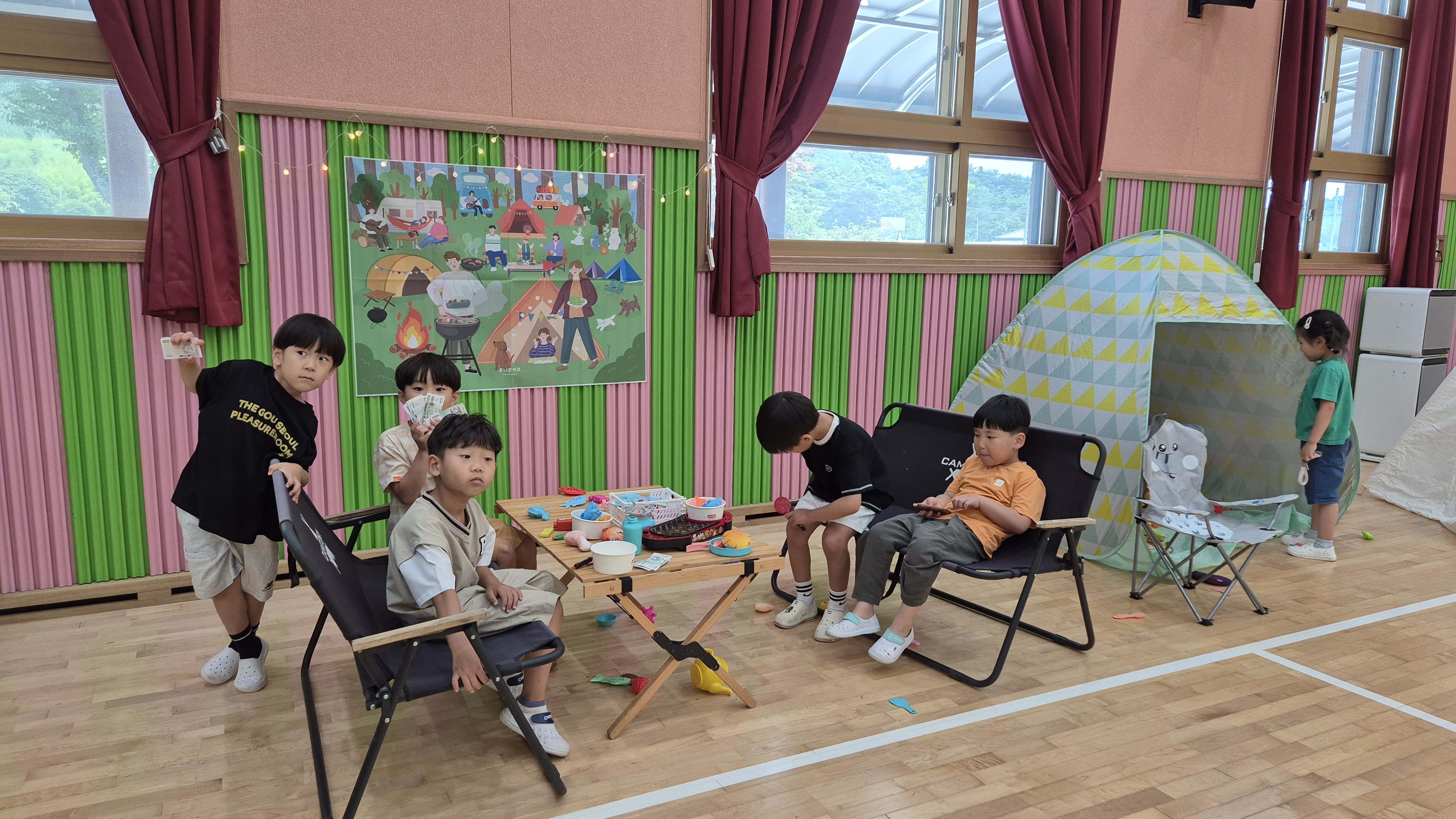 ▷ 진행놀이 : 바람놀이, 캠핑놀이, 색놀이, 자연물놀이, 물길놀이 등