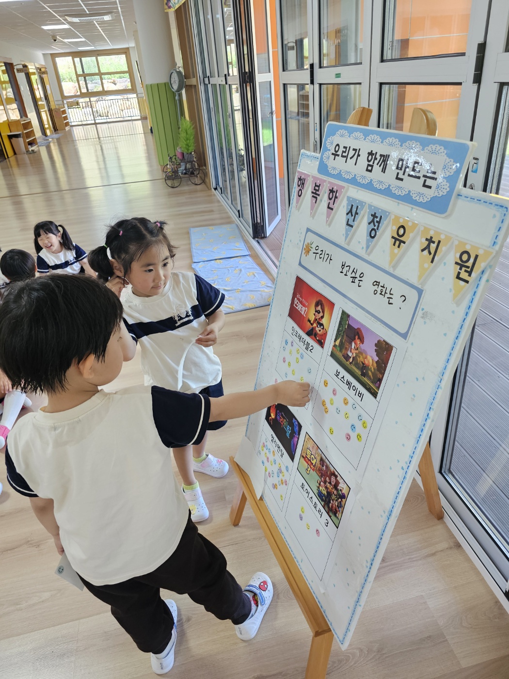 '100일의 자람 파티'에 볼 영화를 아이들이 투표를 통하여 정했습니다.