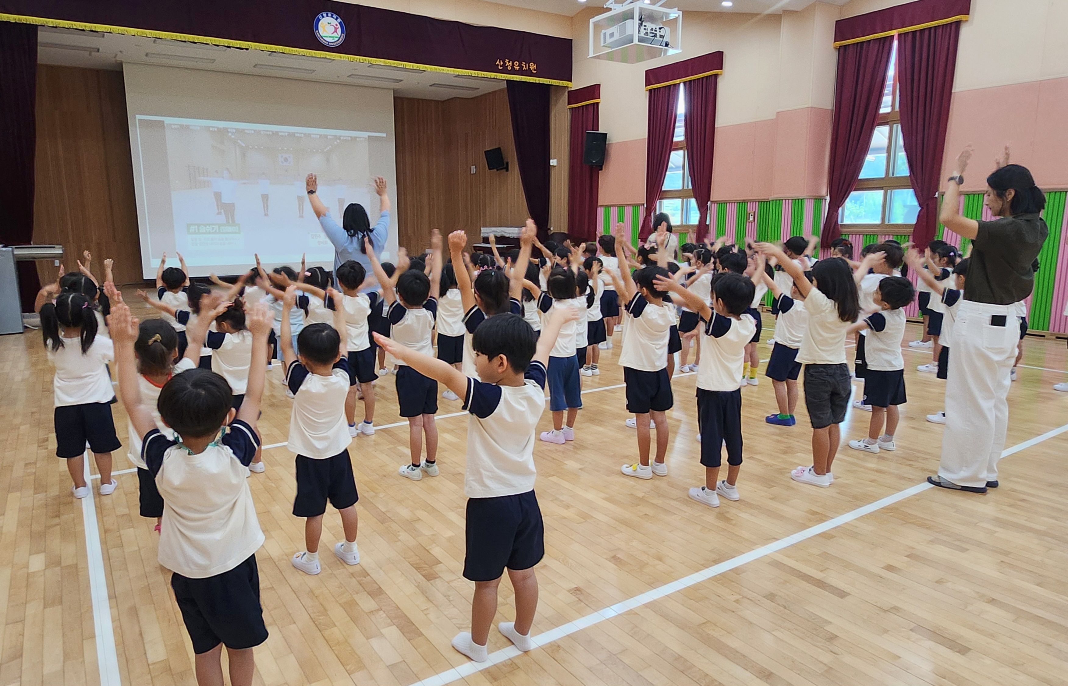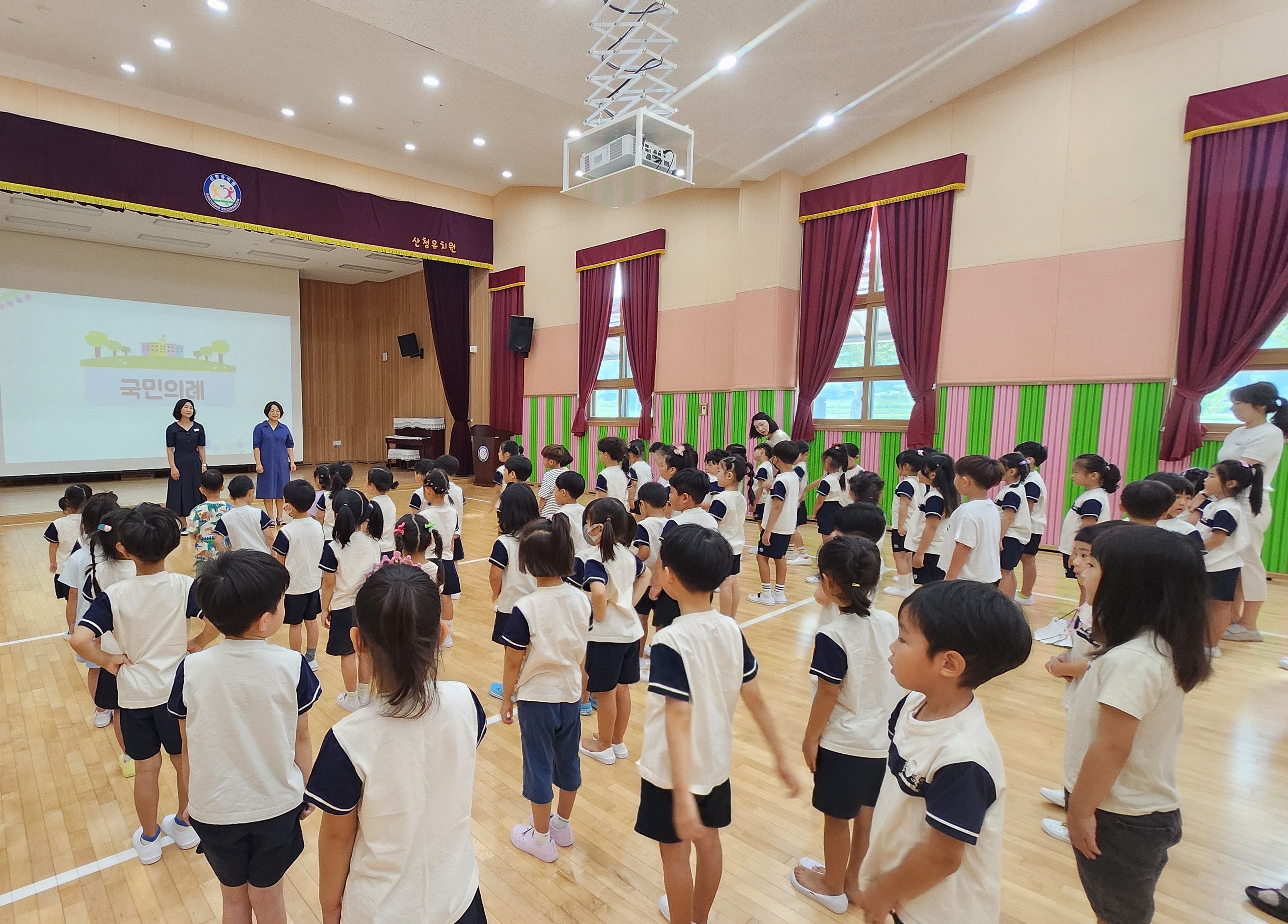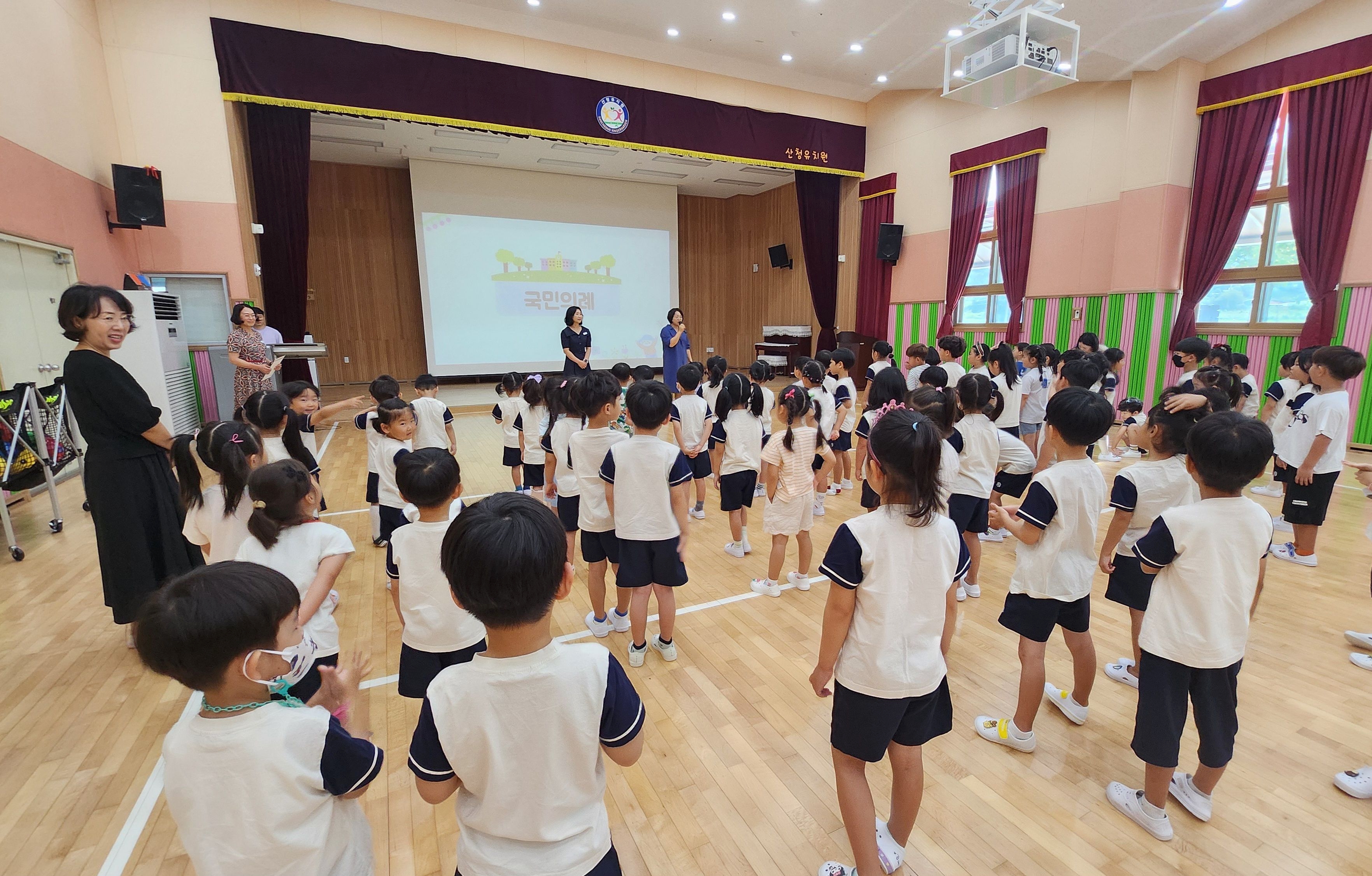 국민의례 및 원가제창, 건강한 몸을 위한 국민체조도 함께 해보았답니다. ^^