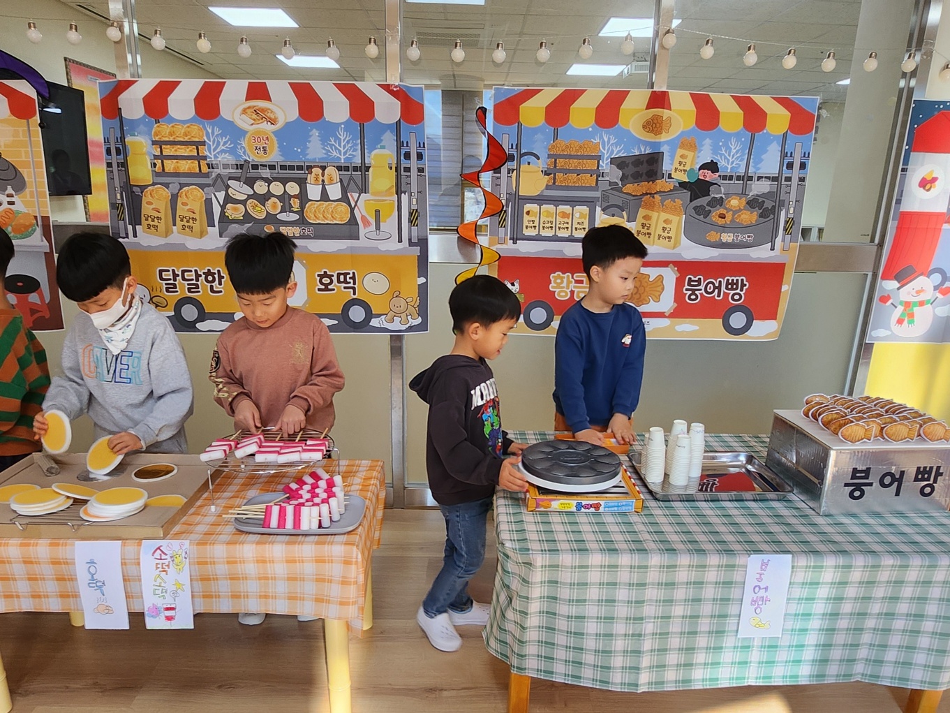 복도 : 찜질방 놀이, 분식 놀이, 팝콘, 어묵