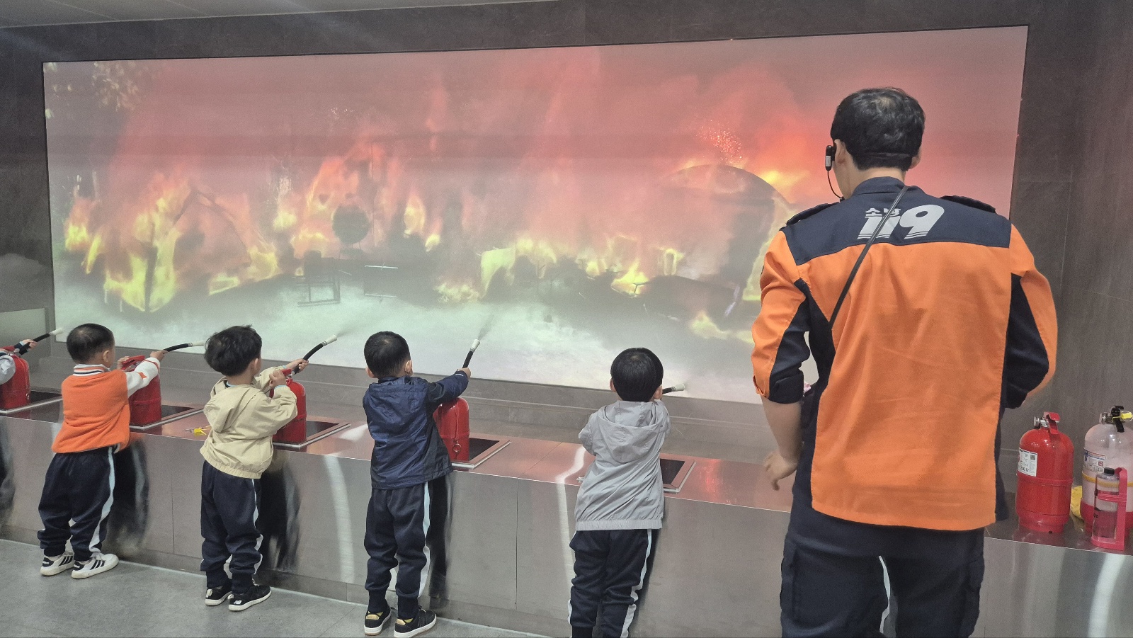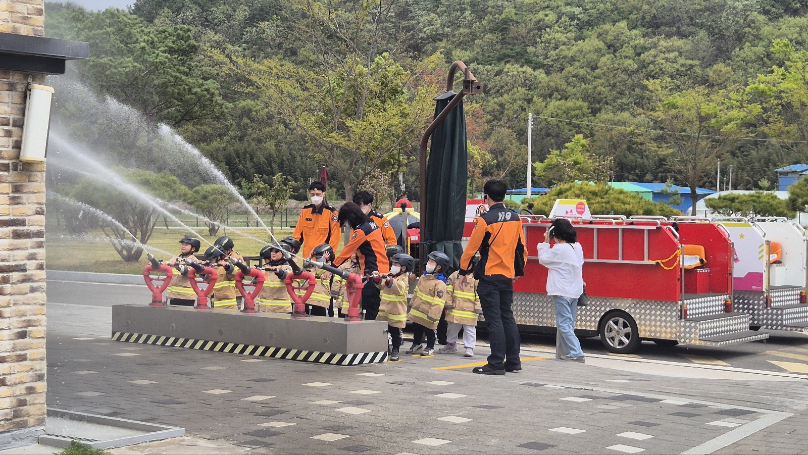 ▷ 야외어린이화재출동 체험 ㅡ 로이와 엠버, 화재진압