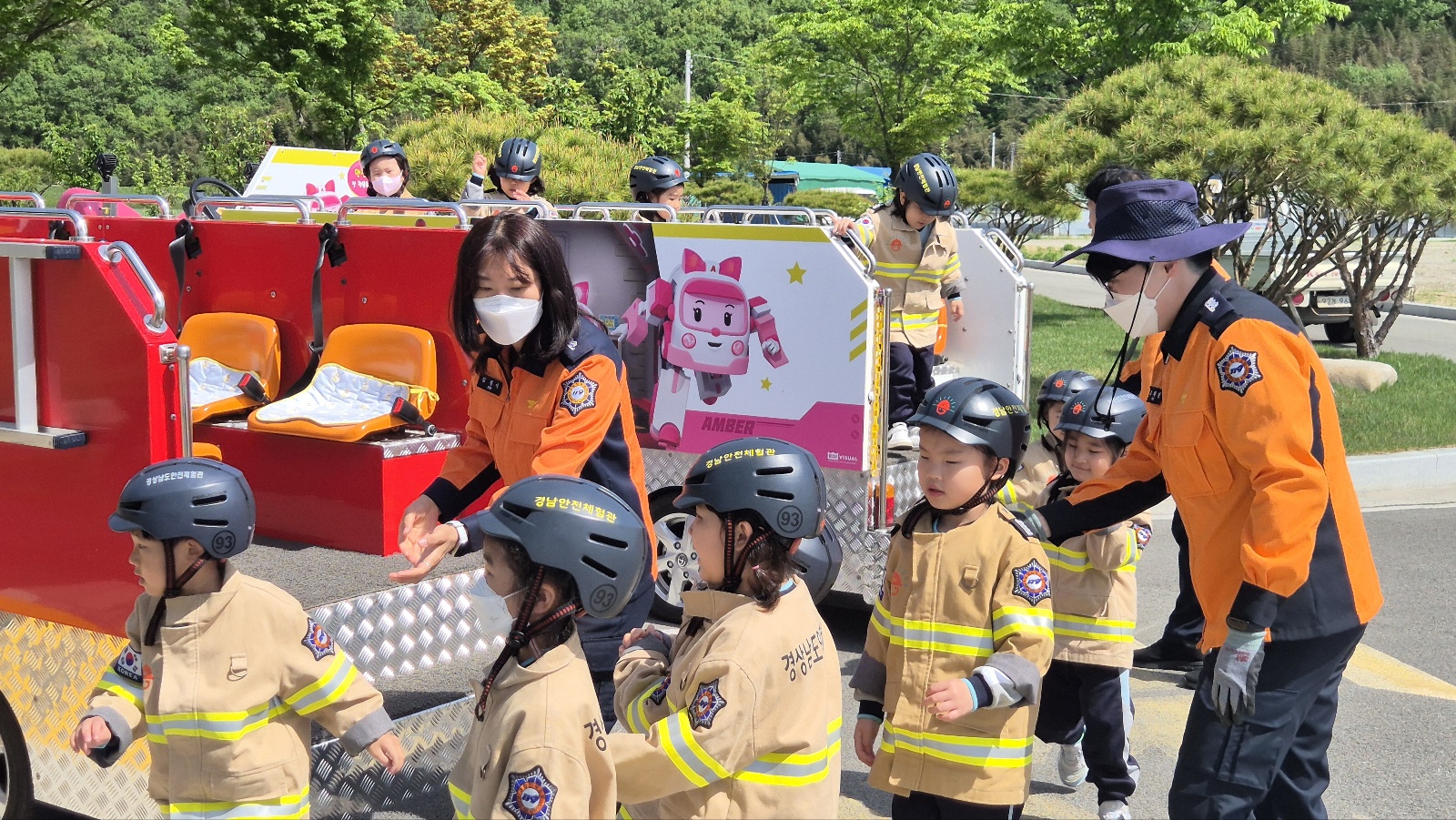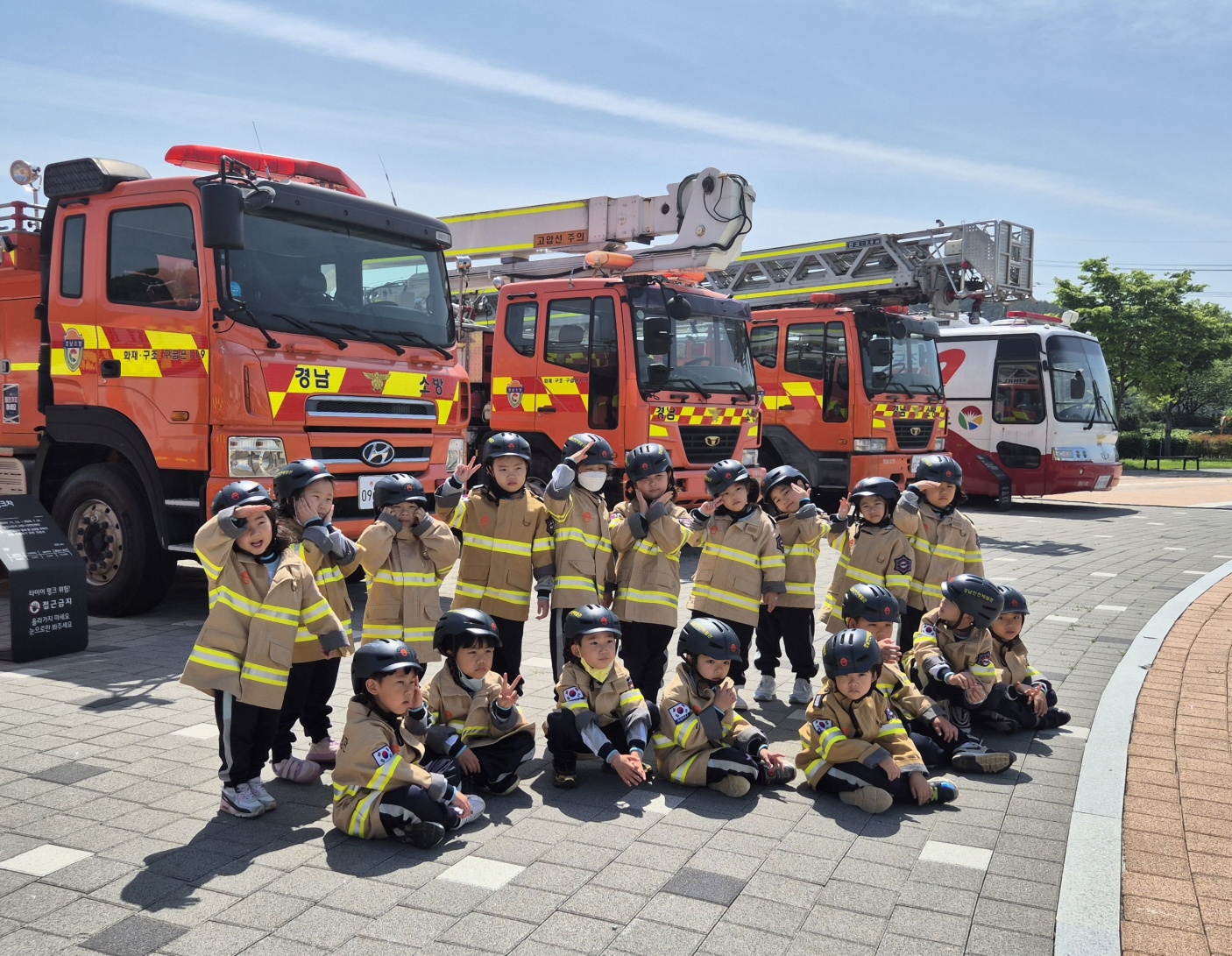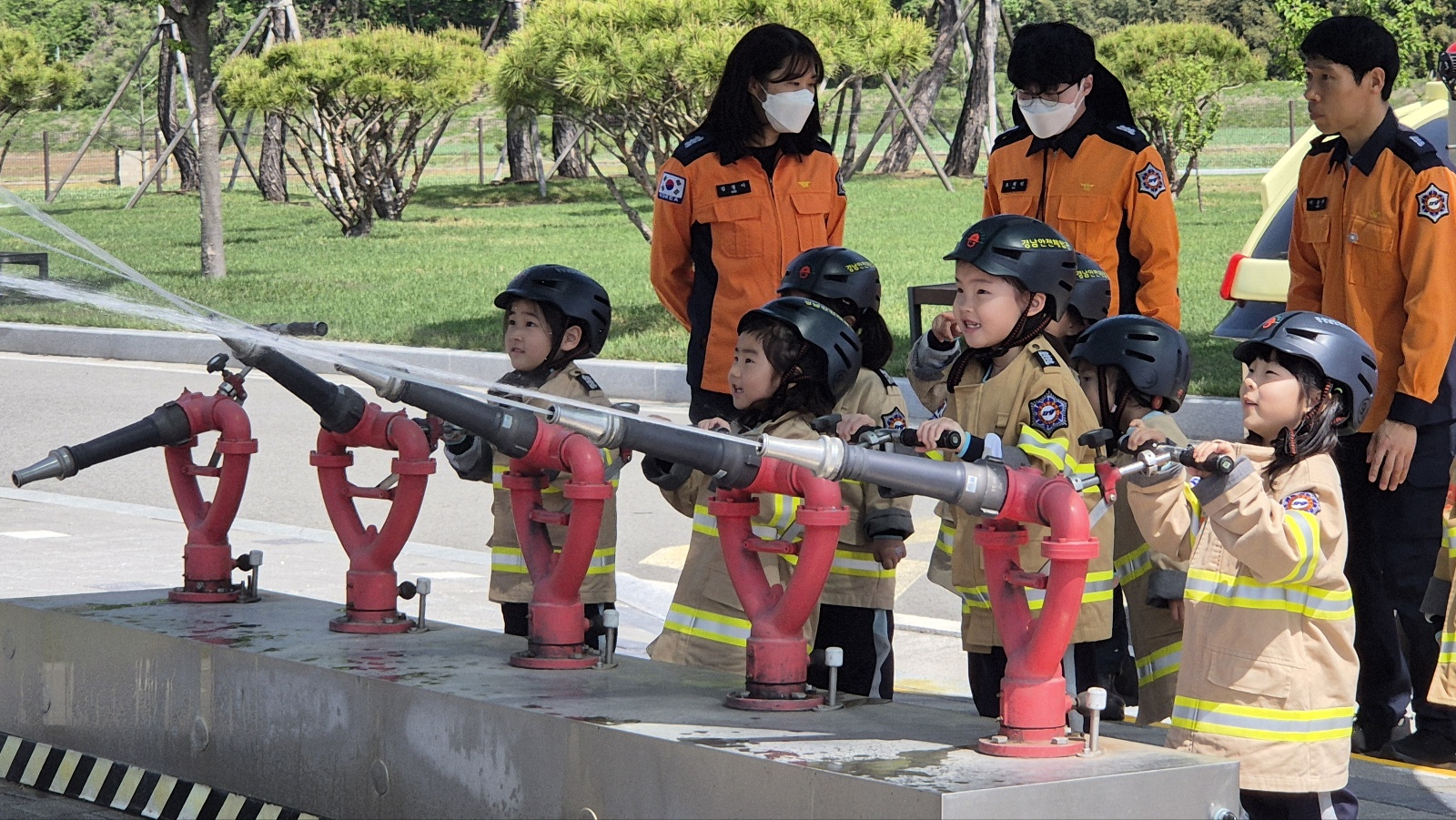 ▷ 야외어린이화재출동 체험 ㅡ 로이와 엠버, 화재진압