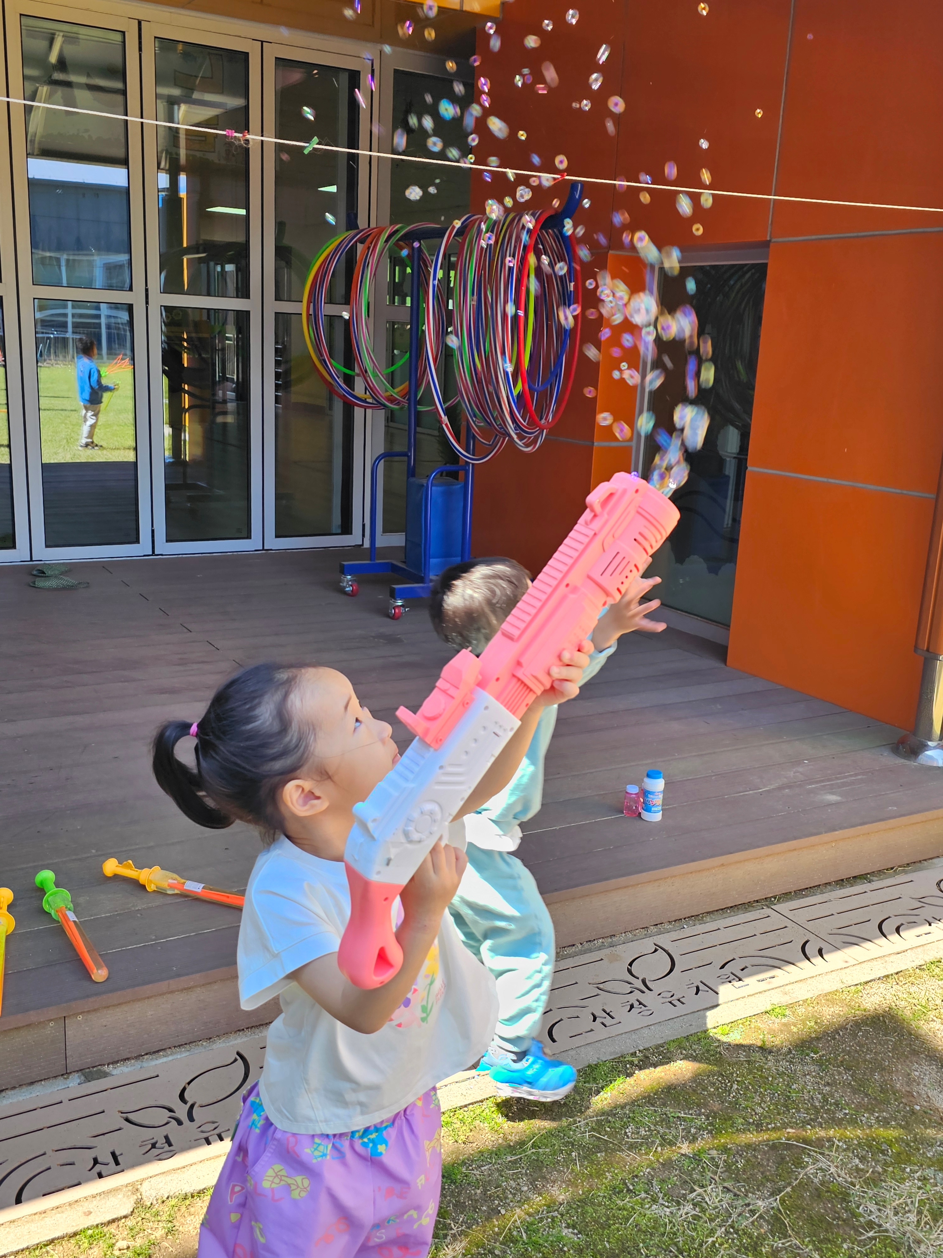 ▷ 바깥놀이터 및 중정에서 비눗방울 놀이(반별로 적이)