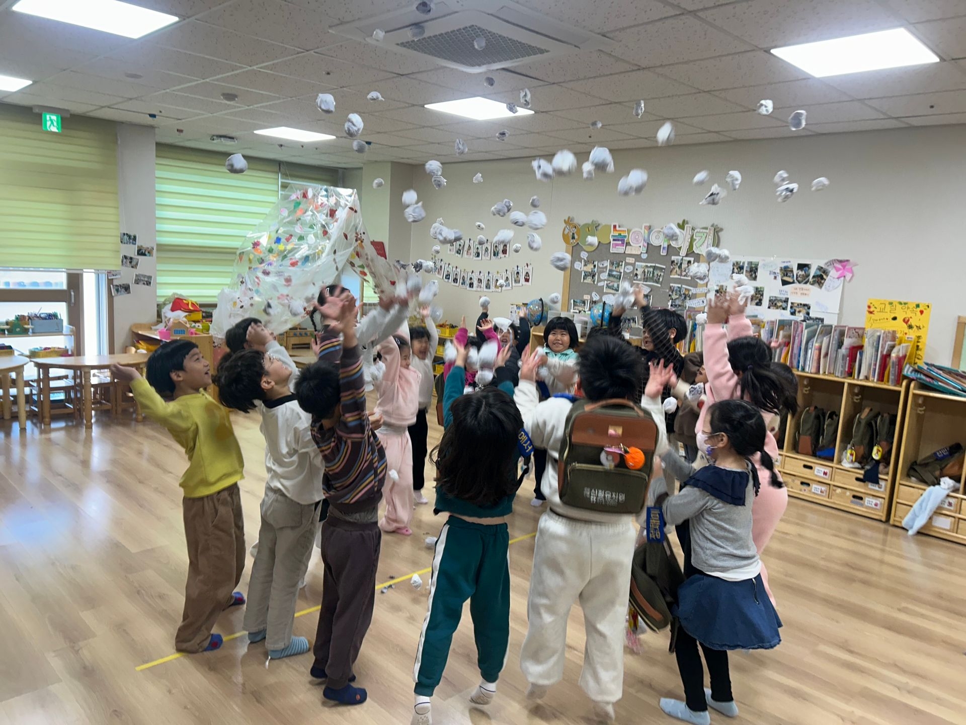 (겨울 캠핑놀이, 이글루 만들기, 신문지 눈싸움)