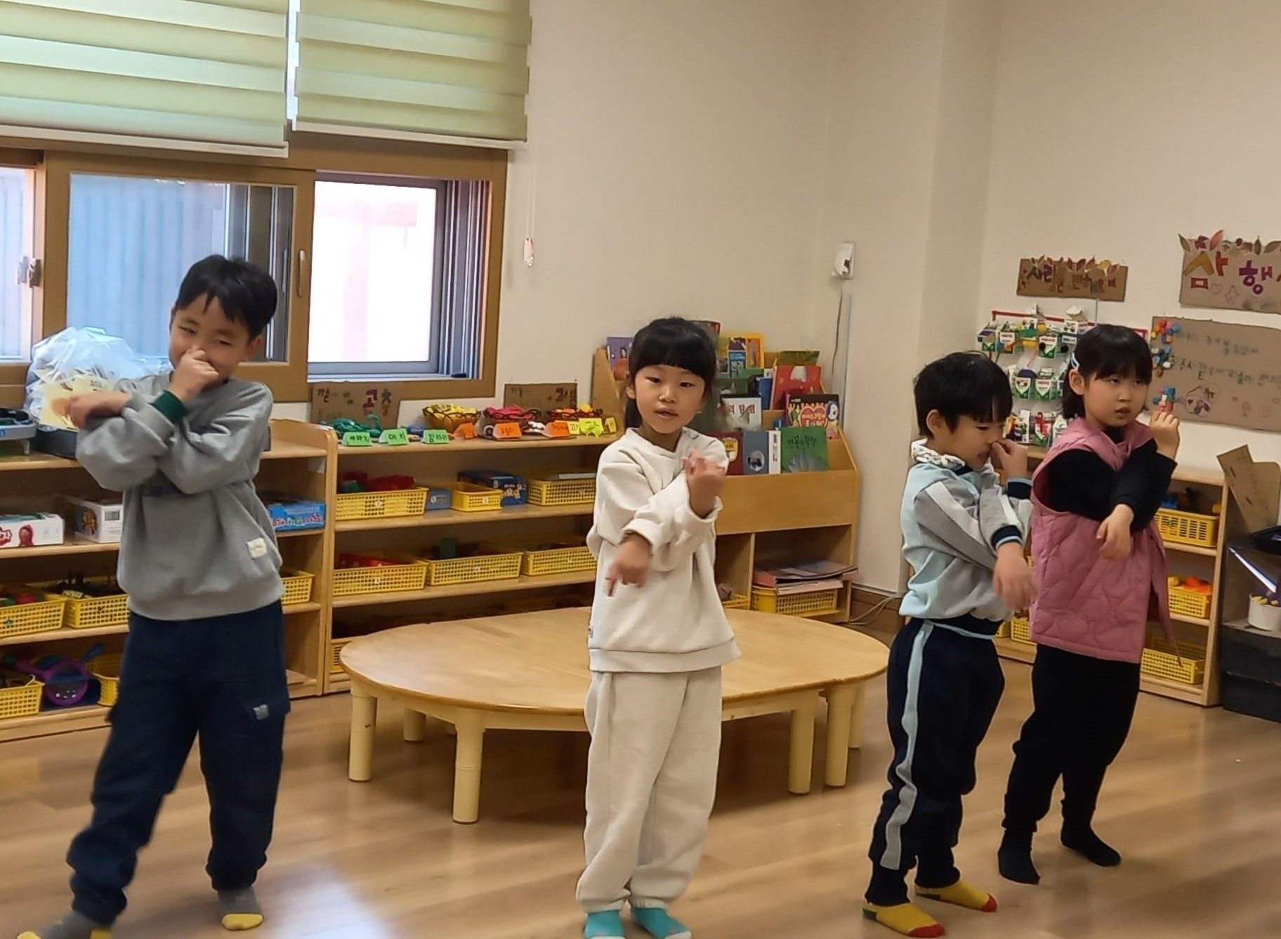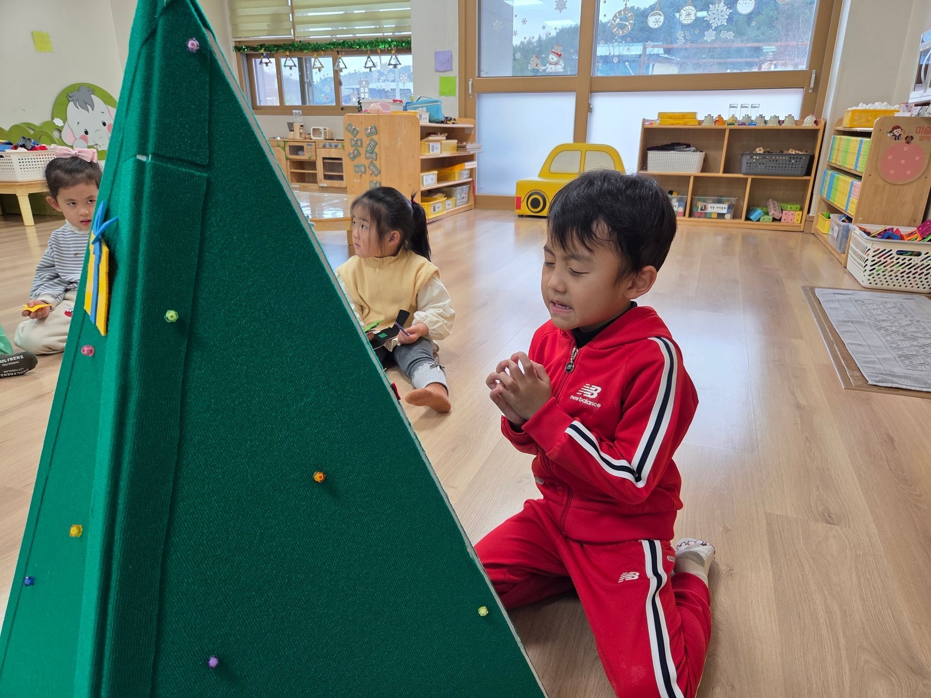 ▷ 체육 : U터널로 온몸 운동을 해요 ▷ 음악 : 트리 꾸미기, 귀로 연주, 뮤지컬 주인공이 되어 동물을 표현해요 ▷ 과학창의 : 모의아떼(아떼가 그리는 트리) ▷ 놀이중심영어 : 눈사람을 영어로 표현해요, 영어 워크북으로 배워요
