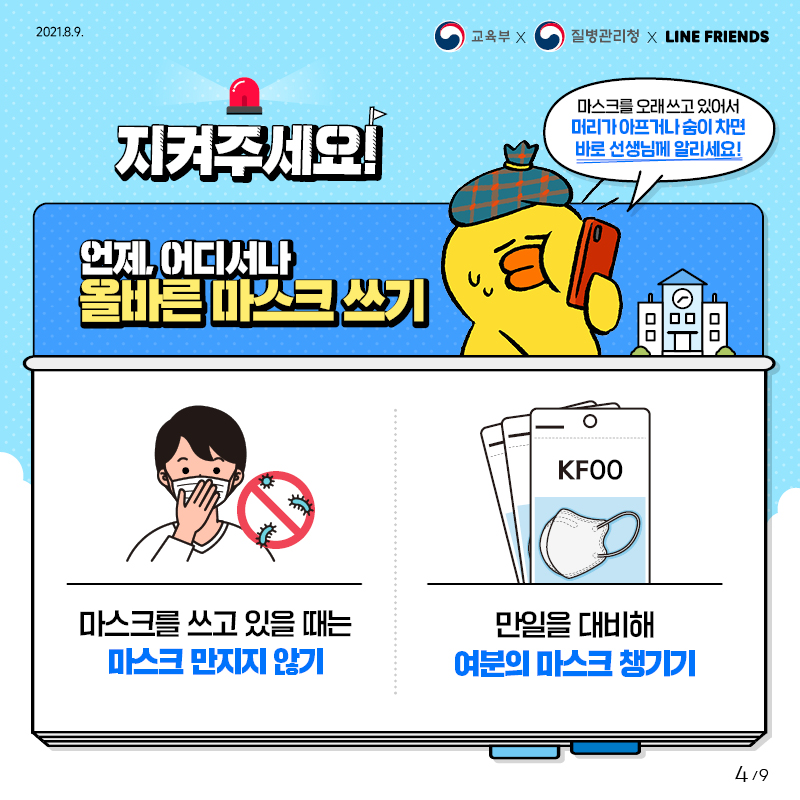 나의 방역 실천이 친구와 학교를 안전하게 지킵니다.