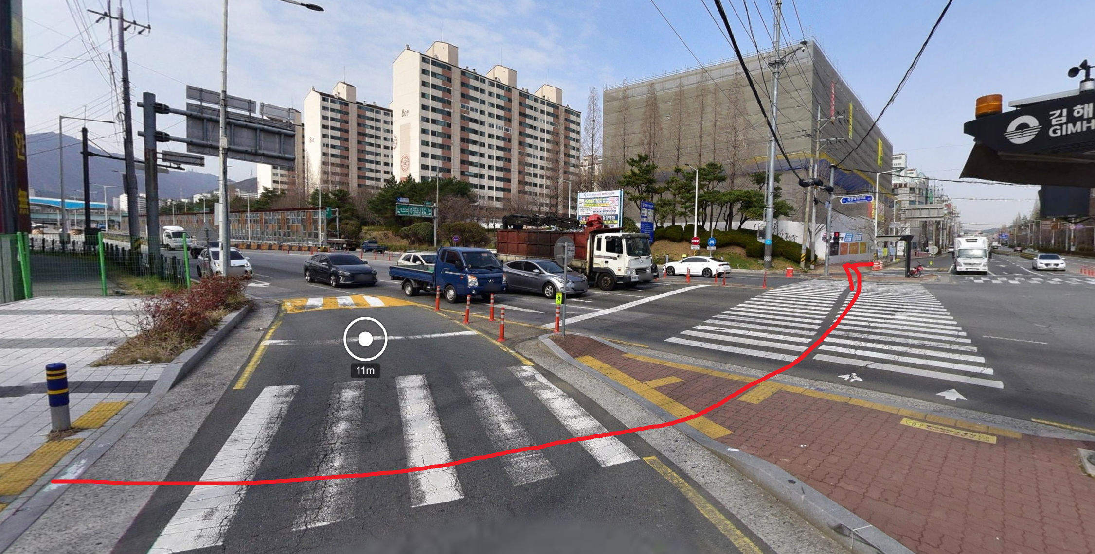 - 2구간: 대동 1단지 사거리 신호등 없는 횡단보도