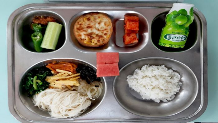 자율-백미밥 잔치국수* (1.5.6.9)깍두기* (9)거꾸로마시는 요구르트 (2)-> 복숭아 맛이 단종되어 샤인머스캣맛으로 제공되었습니다 수박* 콘치즈타르트오븐구이* (1.2.5.6)자율-아삭고추,오이/쌈장 (5.6)