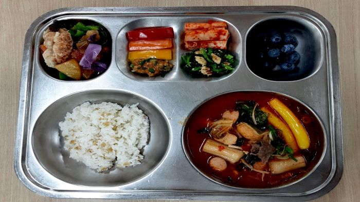 귀리밥* 마라탕(뉴진면)* (1.2.5.6.10.12.13.15.16.18) ---> 저학년은 맵지 않게 제공함시금치호두무침* (5.6.14)블루베리* 배추김치* (9)오븐찹쌀탕수육/소스* (1.5.6.10.13)자율-삼색파프리카스틱/쌈장 (5.6)