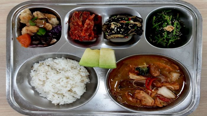 마라탕* (1.2.5.6.10.13.15.16.18)참나물호두무침* (5.6.14)자율-가지구이무침 (5.6.18)머스크멜론* 배추김치* (9)발아현미밥* 오븐찹쌀탕수육/소스* (1.5.6.10.13)