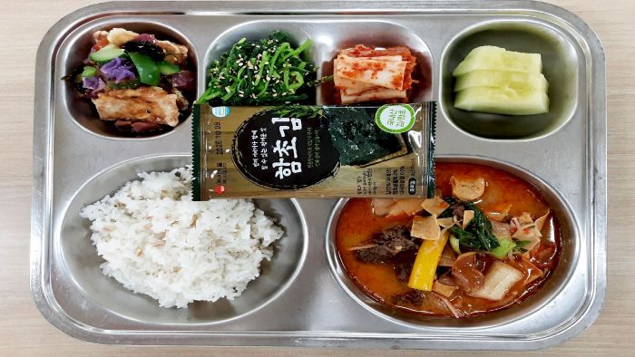 마라탕(뉴진면)* (1.2.5.6.10.12.13.15.16.18)유채나물* (5.6)머스크멜론* 함초김* 배추김치* (9)통밀쌀밥* (6)크리스피꿔바로우/소스* (5.6.10.13)