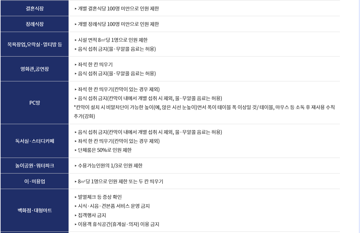 시설 이용자에게도 방역지침 준수 의무가 부과되어 수칙 위반 시 과태료 등이 부과될 수 있음을 알려드리며, 코로나19 예방 및 전파 차단을 위해 방역지침을 반드시 준수하여 주시기 바랍니다.