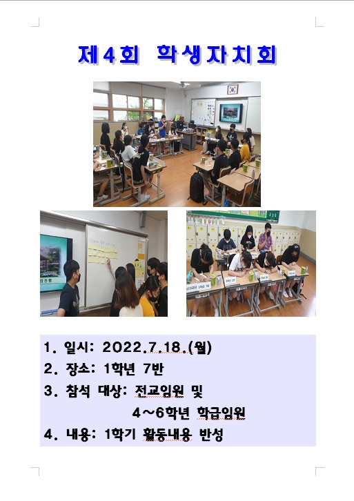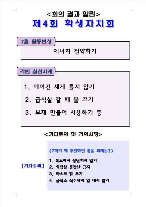 제4회 학생자치회 결과를 안내합니다.(첨부파일 확인)