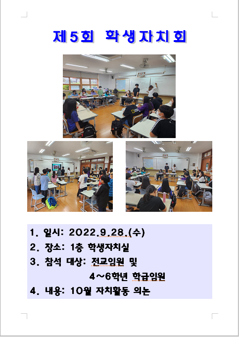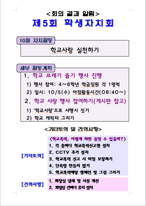 제5회 학생자치회 결과를 안내합니다.(첨부파일 확인)
