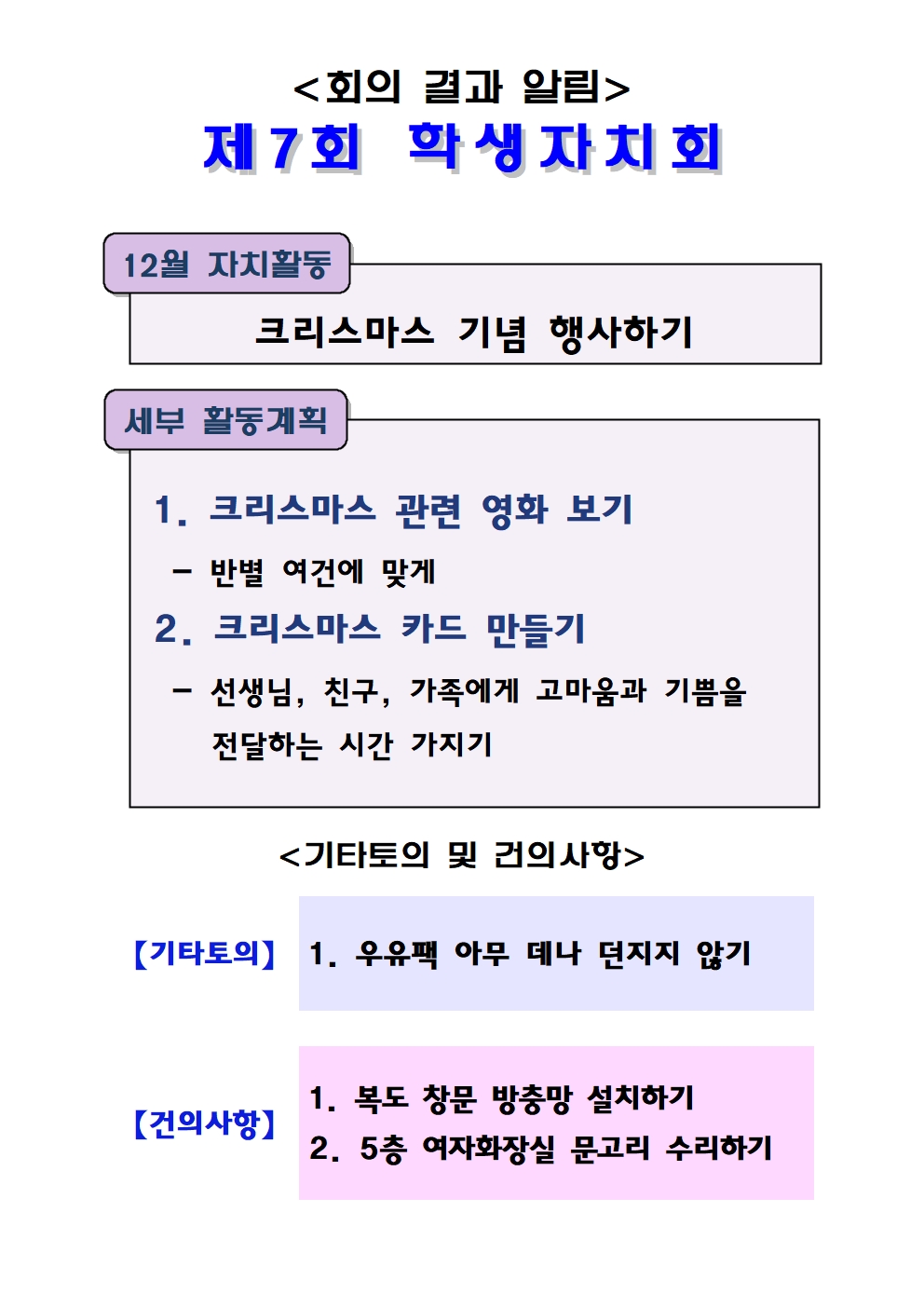 제7회 학생자치회 결과를 안내합니다.(첨부파일 확인)