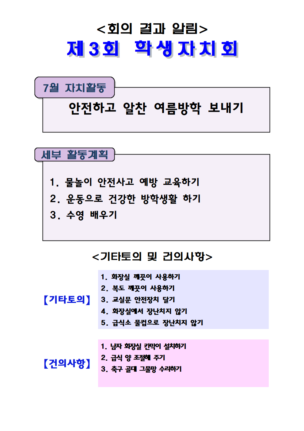 2023학년도 제 3회 학생자치회 회의 결과입니다.