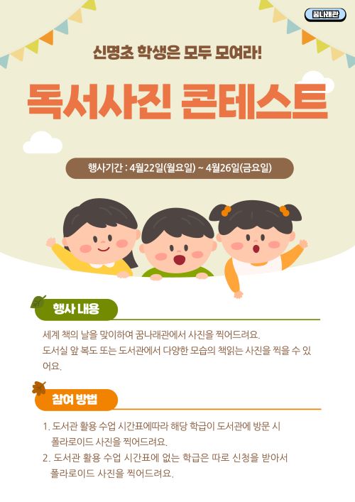 2024 꿈나래 도서관 세계 책의 날 - "독서사진 콘테스트"안내문