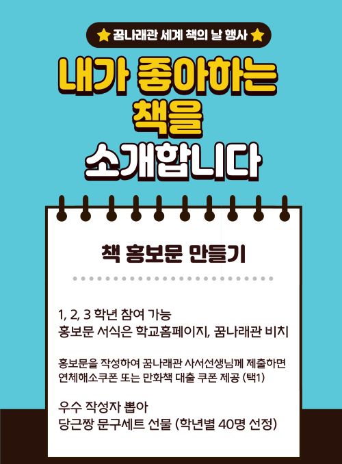 2024 꿈나래 도서관 세계 책의 날 - "내가 좋아하는 책을 소개합니다"안내문과 서식(1~3학년 대상)
