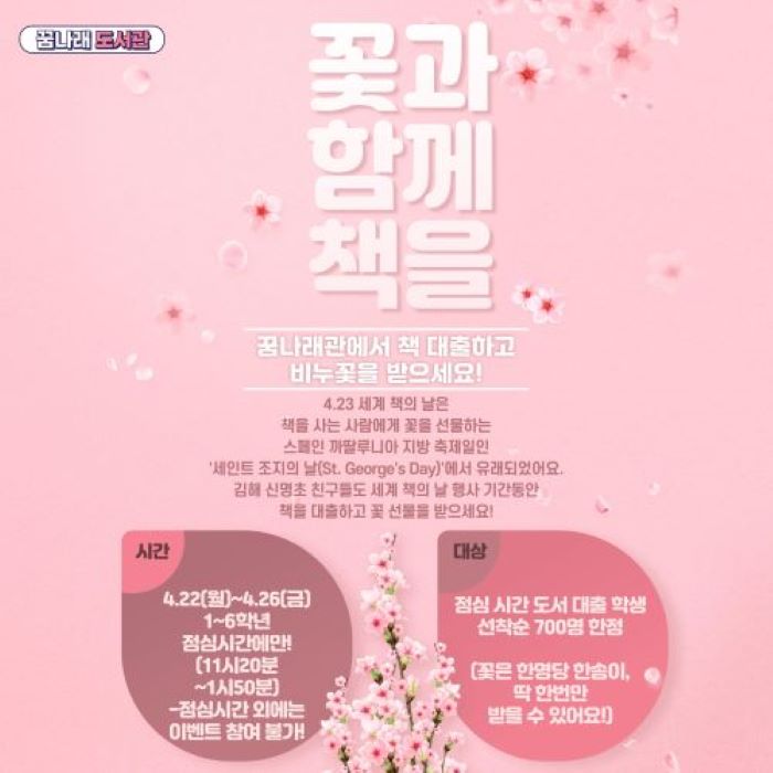 2024 꿈나래 도서관 세계 책의 날 - "꽃과 함께 책을"안내문