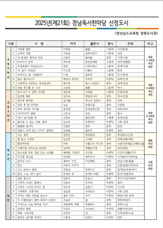 2025년(제21회) 경남독서한마당 선정도서