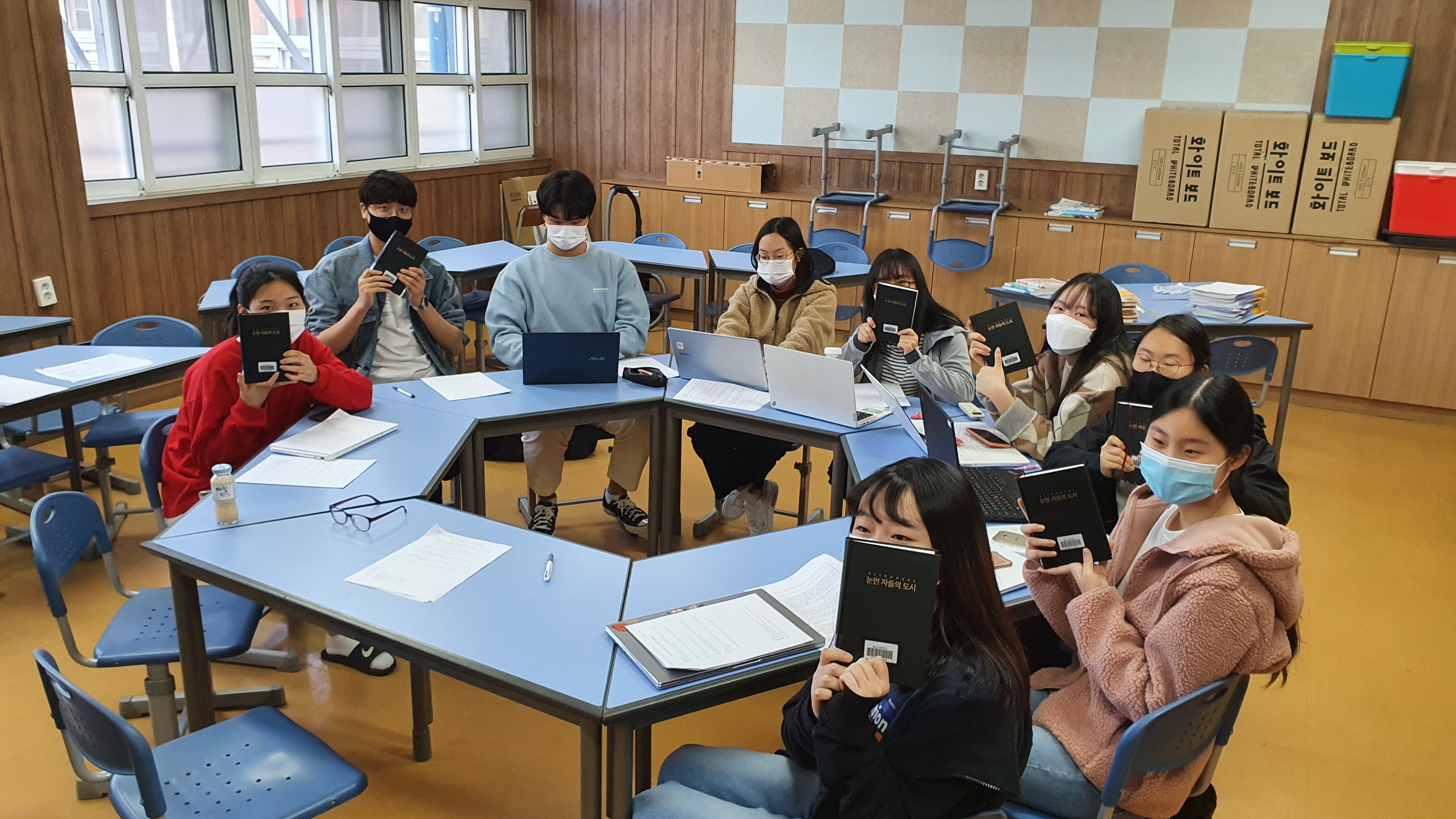 눈먼자들의 도시를 읽고 인간의 본성과 상황에 따른 대처 등의 토의를 했습니다.