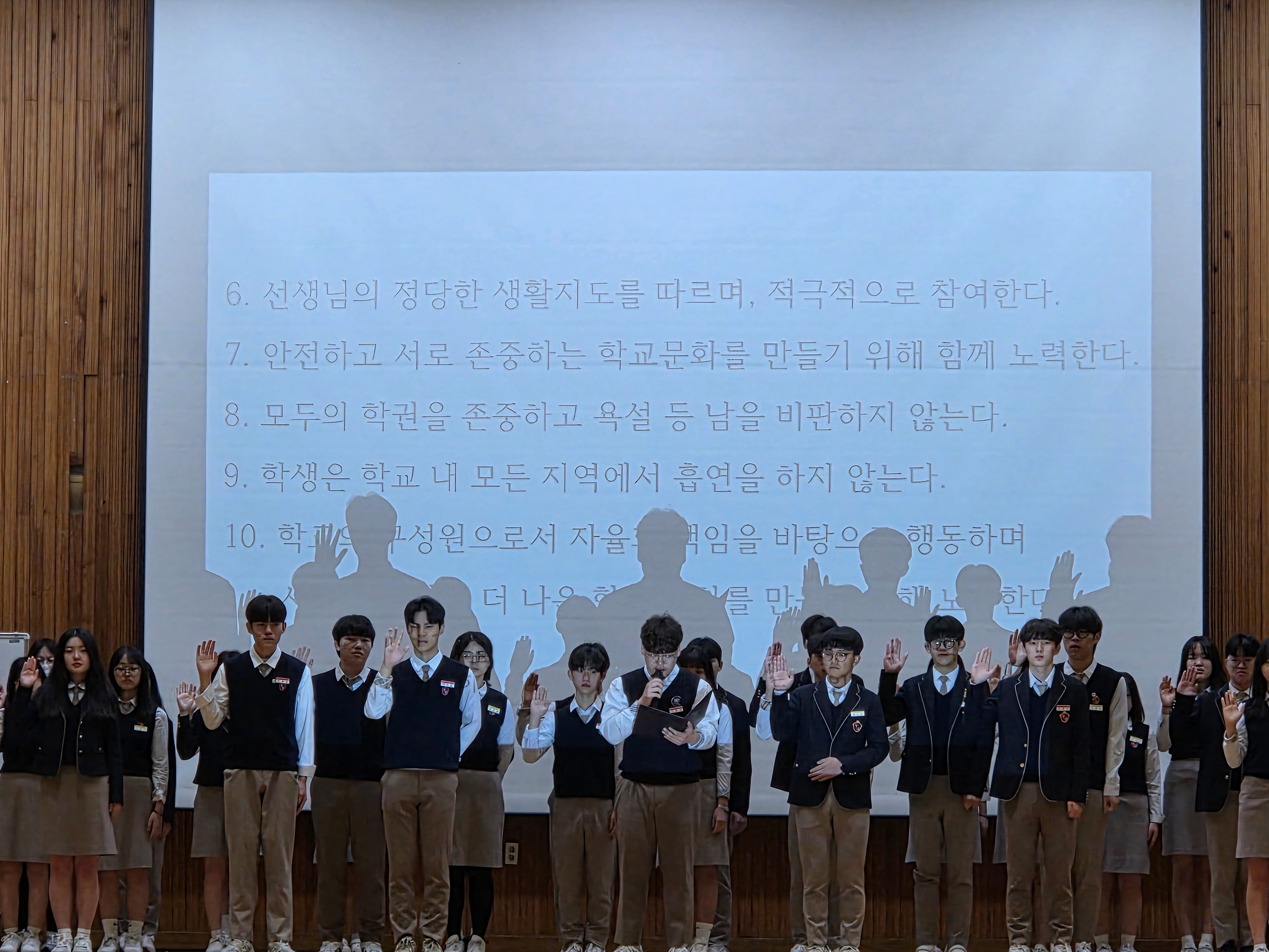 4월 14일 월요일에는 푸르미르 학생회 발대식과 학생회가 직접 작성한 책임규약을 선포하는 책임규약 선포식이 있었습니다.
