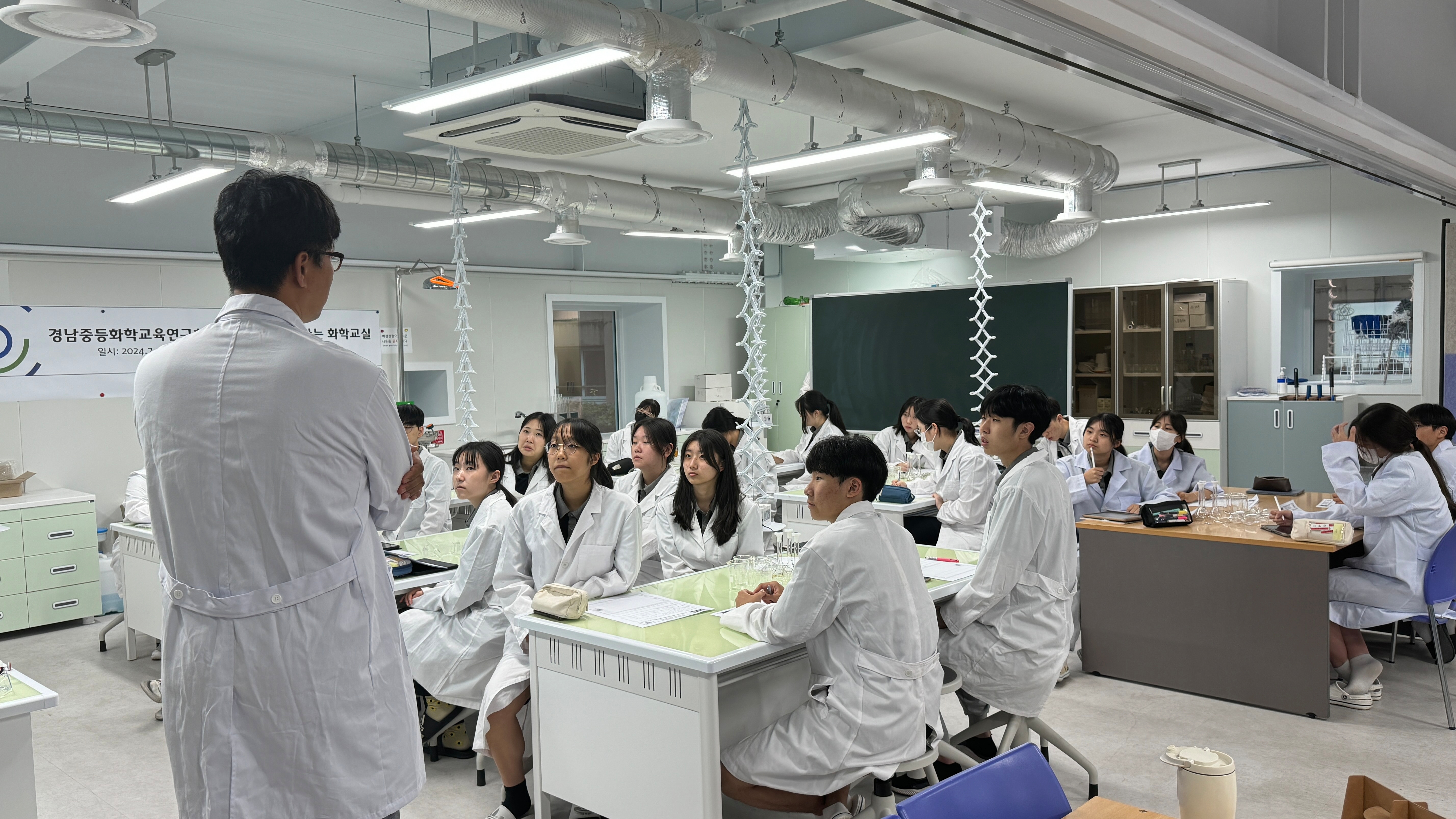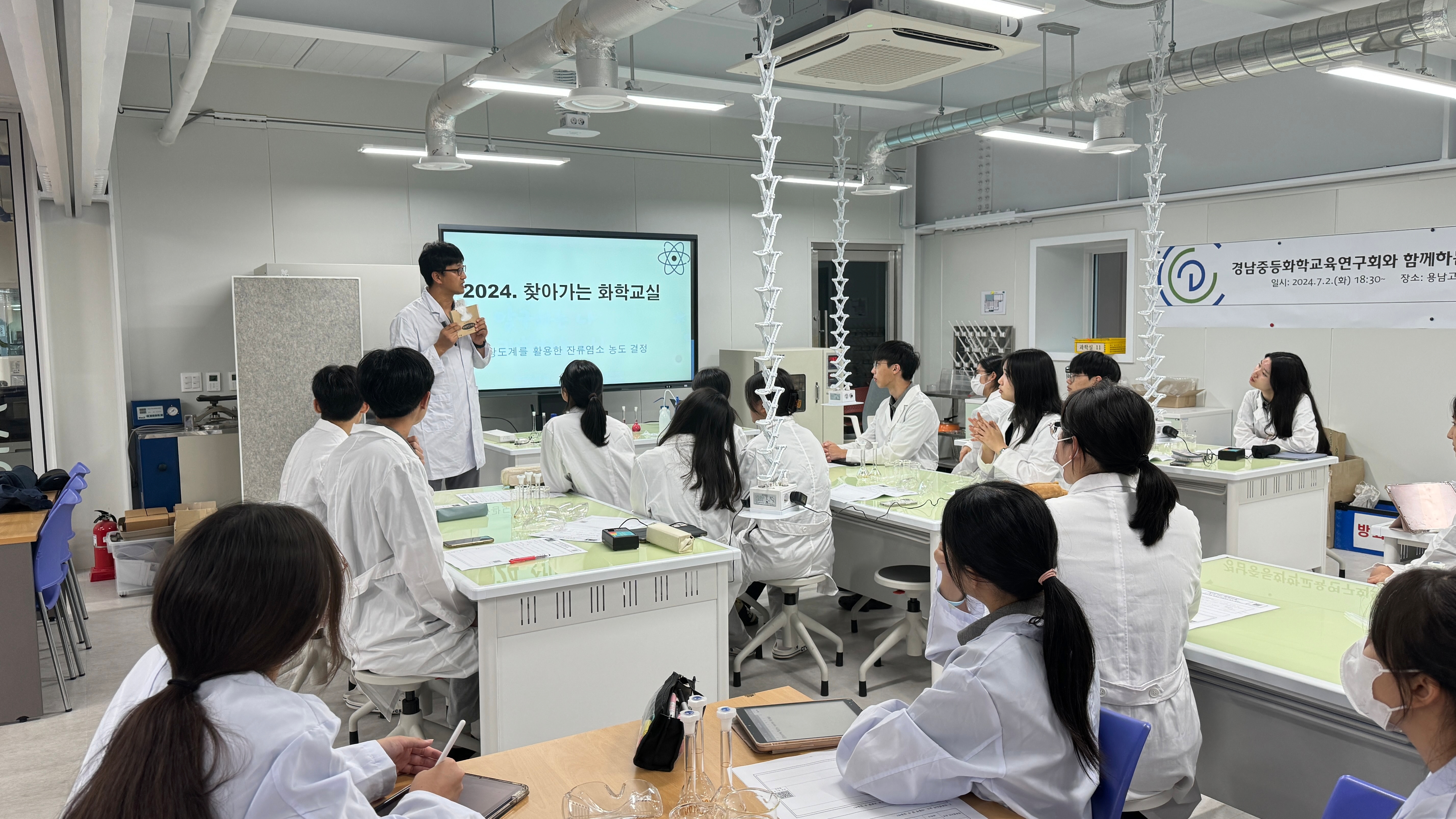경남중등화학교육연구회 선생님들과 함께 물의 잔류염소 농도 측정이라는 주제로 화학 실험을 진행하였습니다.