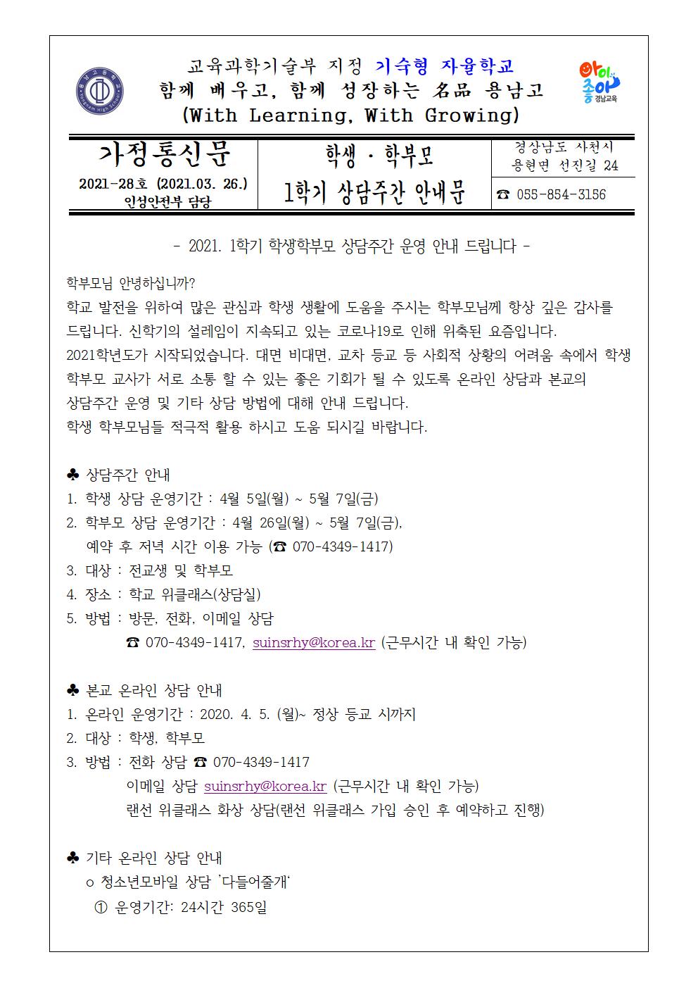 2021.1학기 상담주간 안내 가정통신문.hwp