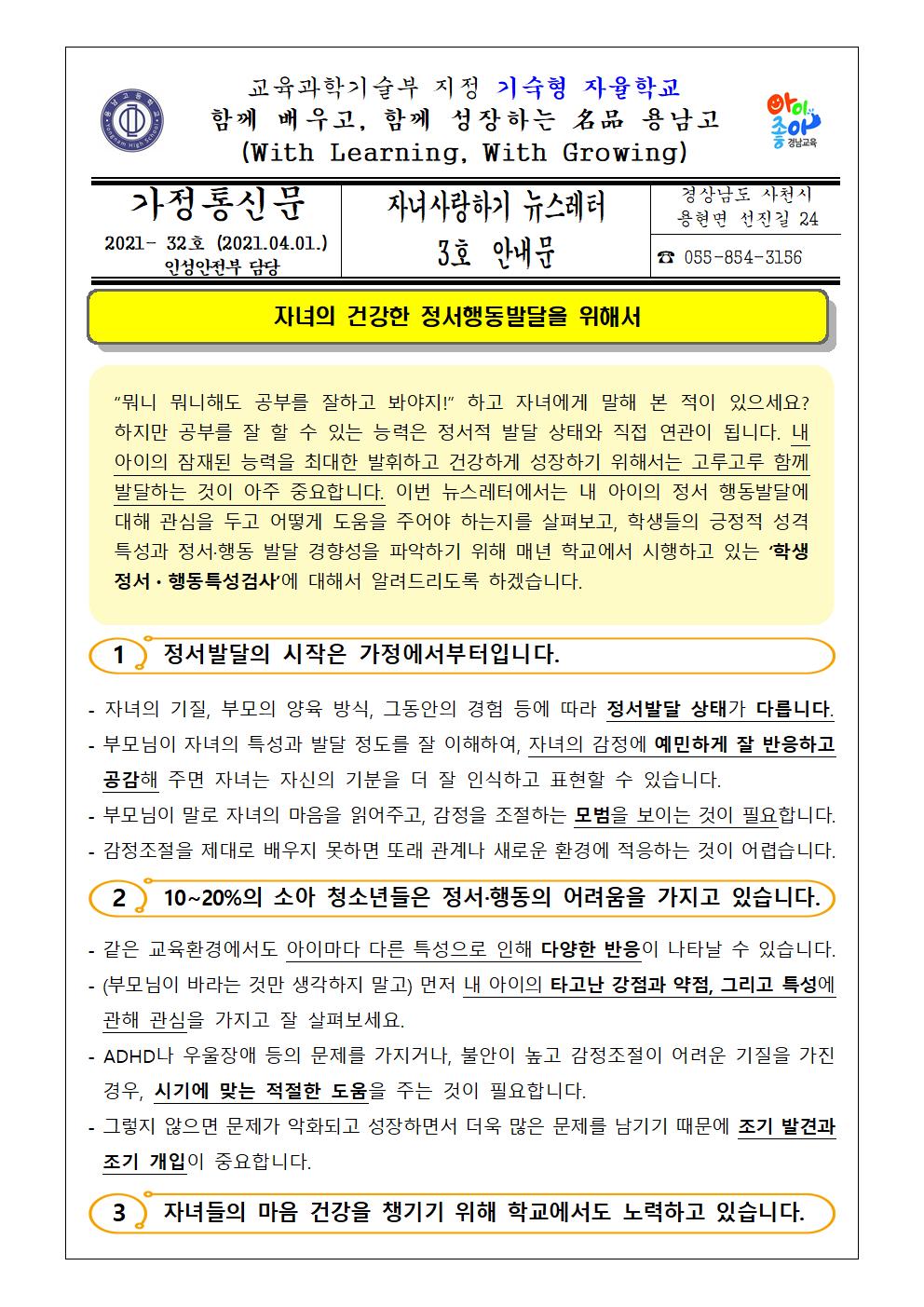 2021. 자녀사랑하기 뉴스레터 3호 가정통신문