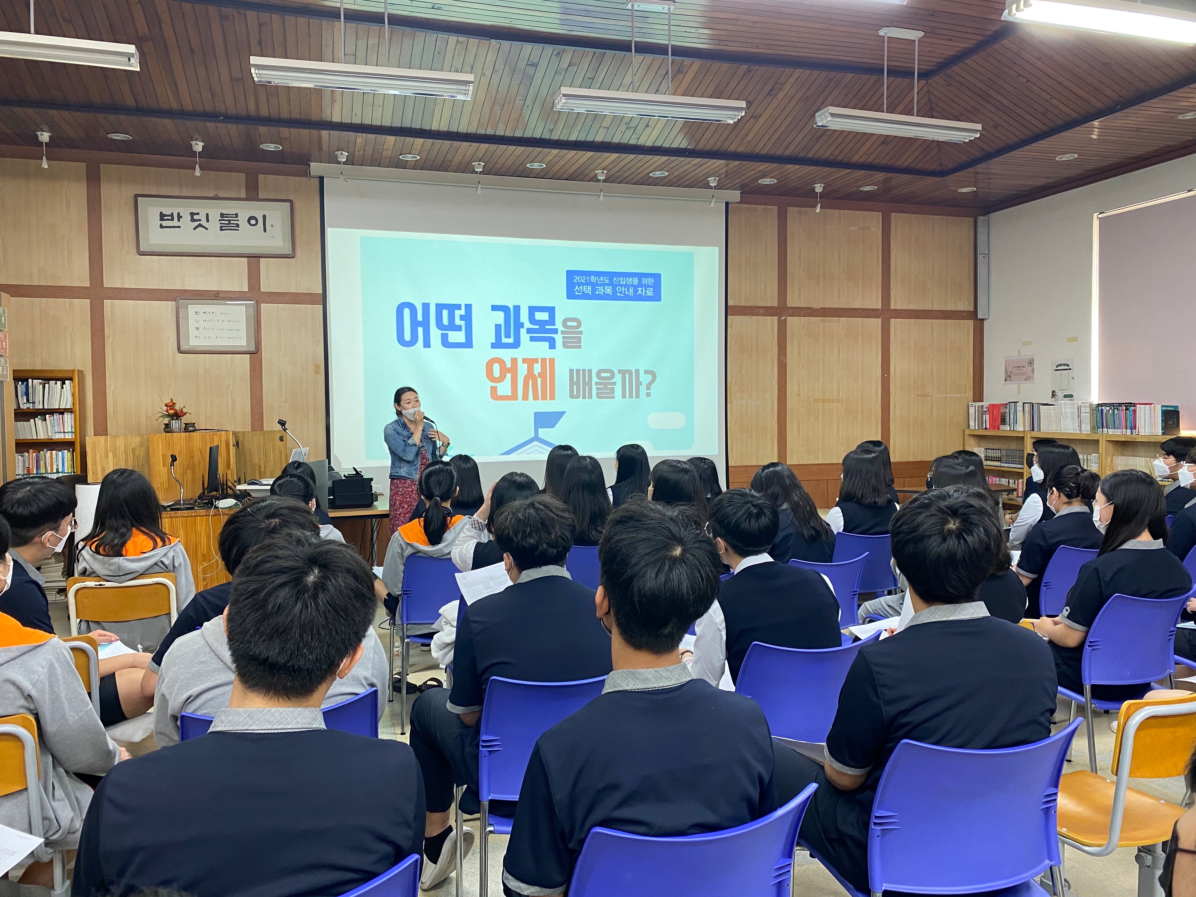 과목 담당 교사가 직접 실제 교과의 운영 방침을 소개하고, 궁금한 점을 질의 응답하는 과목 안내 행사를 실시하였습니다. 학습자 스스로 과목에 대해서 알아보고, 자신의 진로와 함께 고민해보는 유익한 시간이었기를 바랍니다.