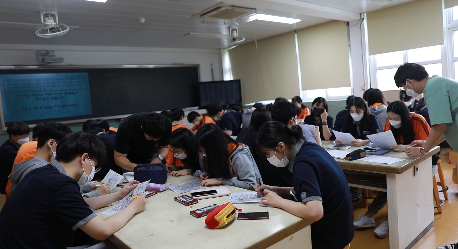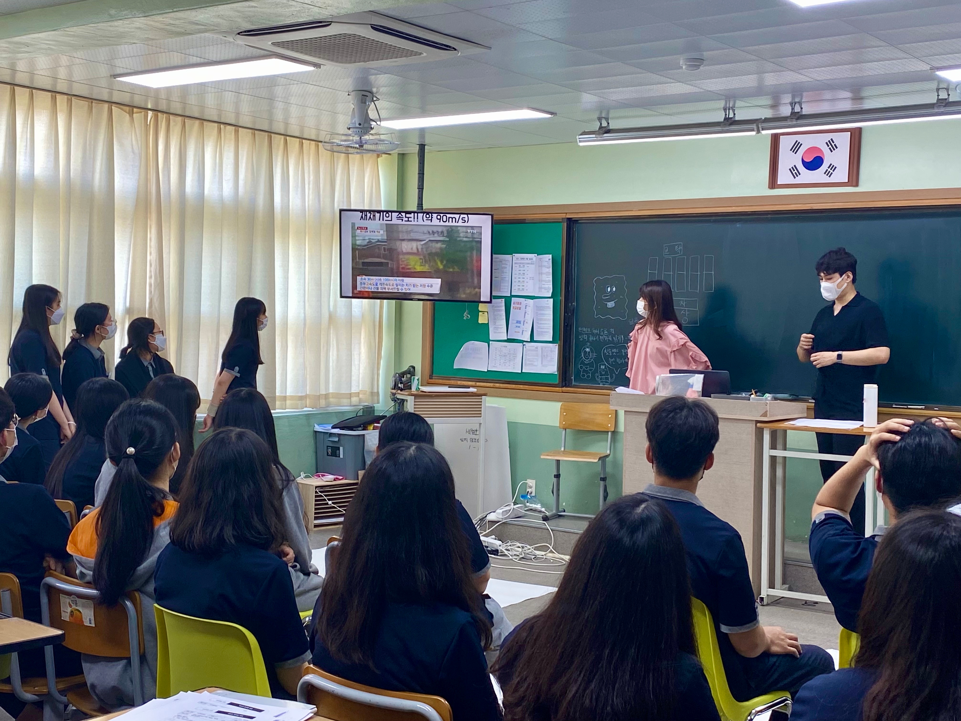 1학년 학생들을 대상으로 1학기 프로젝트 수업 주간을 운영하였습니다. 학생들은 최근의 사회적 이슈나 자신의 관심사, 진로 분야를 고려하여 참여하고 싶은 수업을 사전 신청하였으며, 이틀에 걸쳐 1인당 2개 반의 주제를 학습했습니다.
