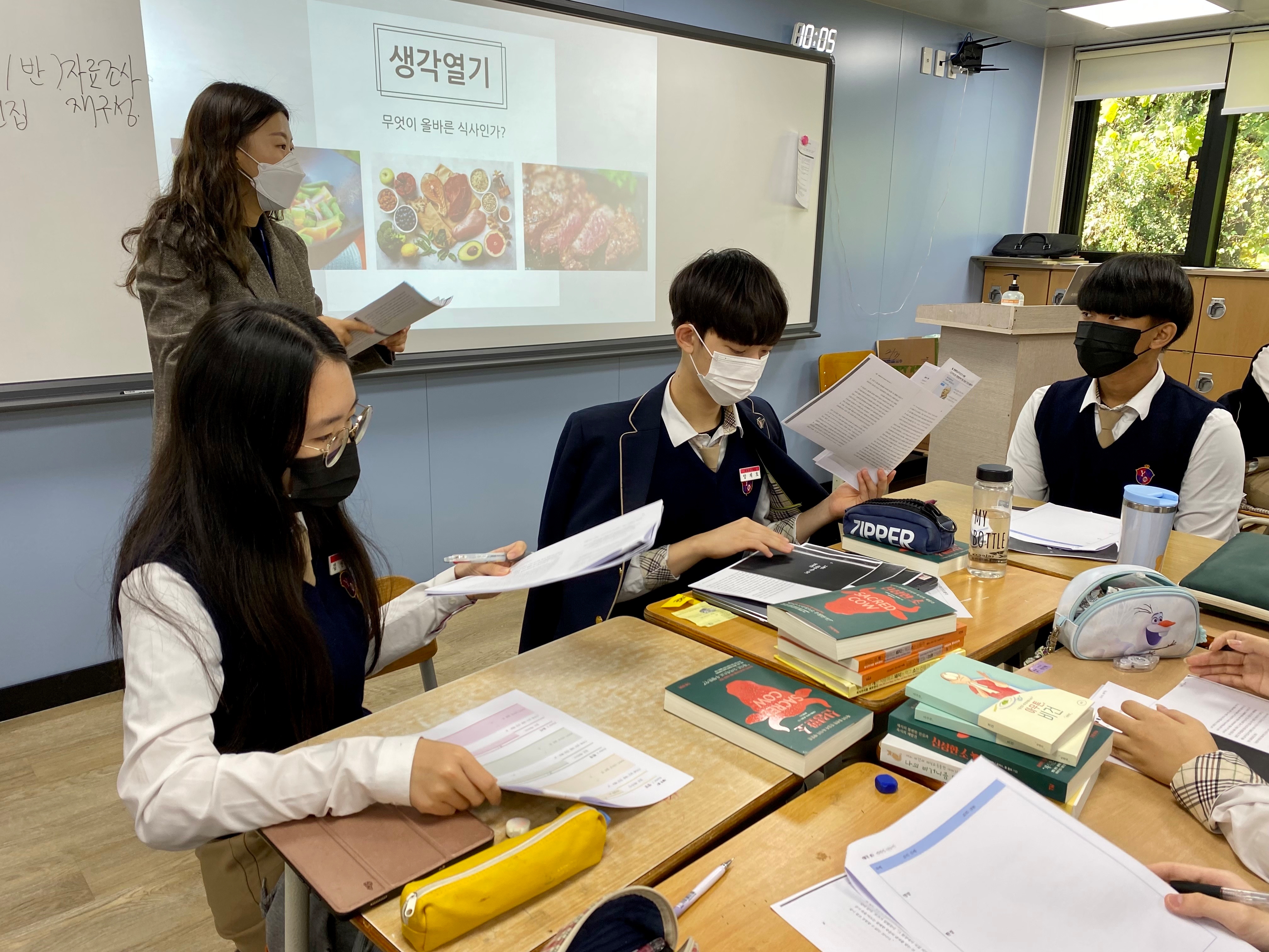 학생들은 최근의 사회적 이슈나 자신의 관심사, 진로 분야를 고려하여 참여하고 싶은 수업을 사전 신청하였으며, 이틀에 걸쳐 1인당 2개 반의 주제를 학습했습니다. * 2학년 학부모 초청 수업 공개 : 2021. 11. 4.(목)