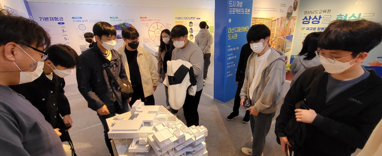 1학년 학생들이 김해 문화의 전당에서 개최된 경남건축문화제와 부산 감천문화마을로 인사이트 투어를 다녀왔습니다. 경남건축문화제 내 공공건축 기획전 경남교육청 학교공간혁신사업전 부스에서 개축될 본교 교사를 실제 모형으로 관람하며, 새로운 교사에서 해보고 싶은 활동들에 대해 구상해보는 뜻깊은 시간이었습니다.