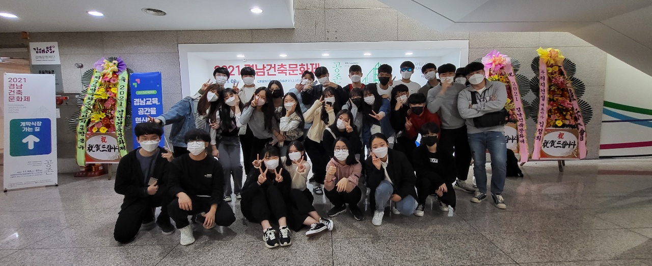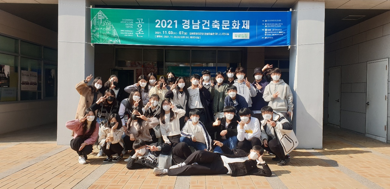 * 일시: 2021.11.5.(금) * 대상: 1학년(110명) * 장소: 김해(문화의 전당), 부산(감천문화마을) * 내용: 경남건축문화제 부스별 전시 관람 및 체험, 감천문화마을 스탬프 투어